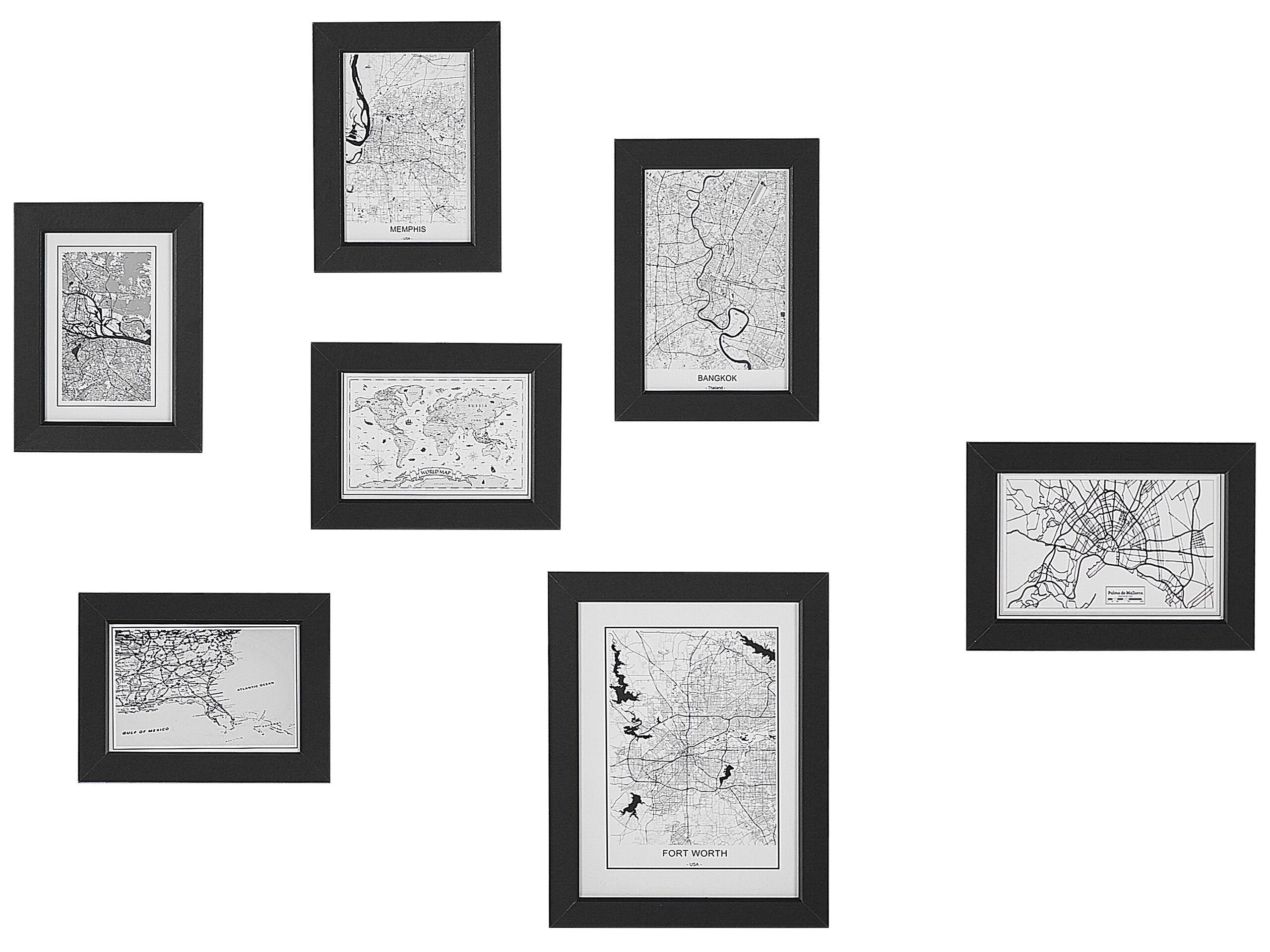 Collage de photos encadrées. Cet ensemble tendance de cartes encadrées, montrant des plans de villes et de lieux géographiques, est parfait pour décorer votre intérieur. Encadrées en MDF et protégées par une feuille de plexiglas, toutes les pièces sont robustes et ne risquent pas de se casser. Des crochets à l'arrière permettent de les fixer et de les réarranger facilement.