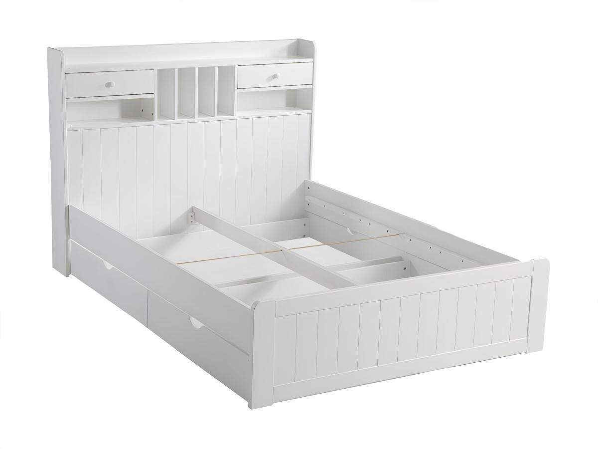 Grâce à sa tête de lit munie d'étagères et de tiroirs, vos livres sont à portée de main et vous pouvez exposer quelques objets déco. Les deux grands tiroirs situés sous le lit, quant à eux, vous permettront de gagner de la place et de mettre de l'ordre facilement dans votre chambre.