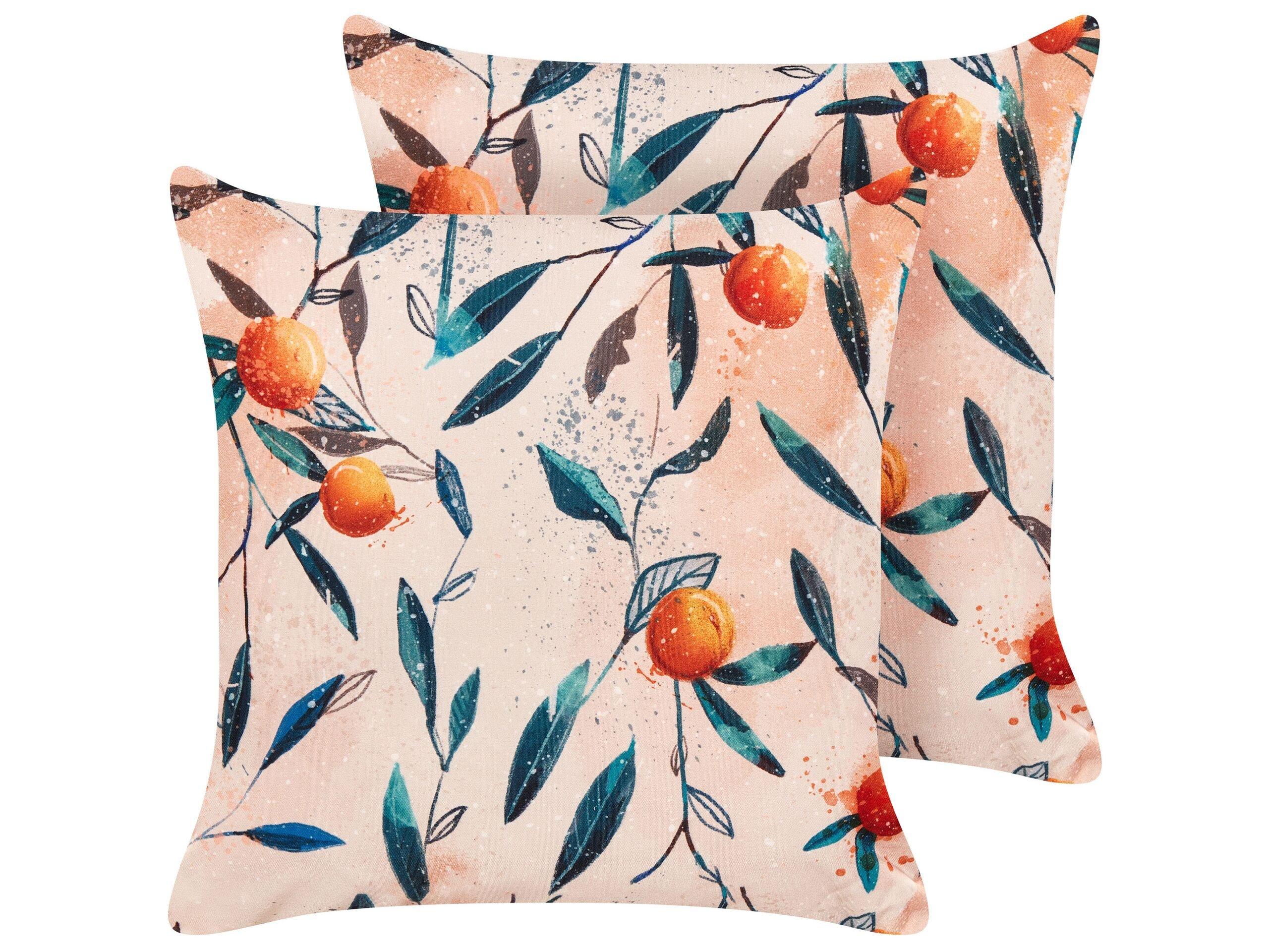 Set de 2 coussins d'extérieur. Rendez vos moments en plein air encore plus agréables avec ce lot de deux coussins élégants. Leurs housses hydrofuges arborent un motif de feuilles et de nectarines, donnant à votre espace extérieur un charme décontracté. Pour tout jardin ou balcon moderne, cet accessoire doux apportera à la fois fonctionnalité et style.