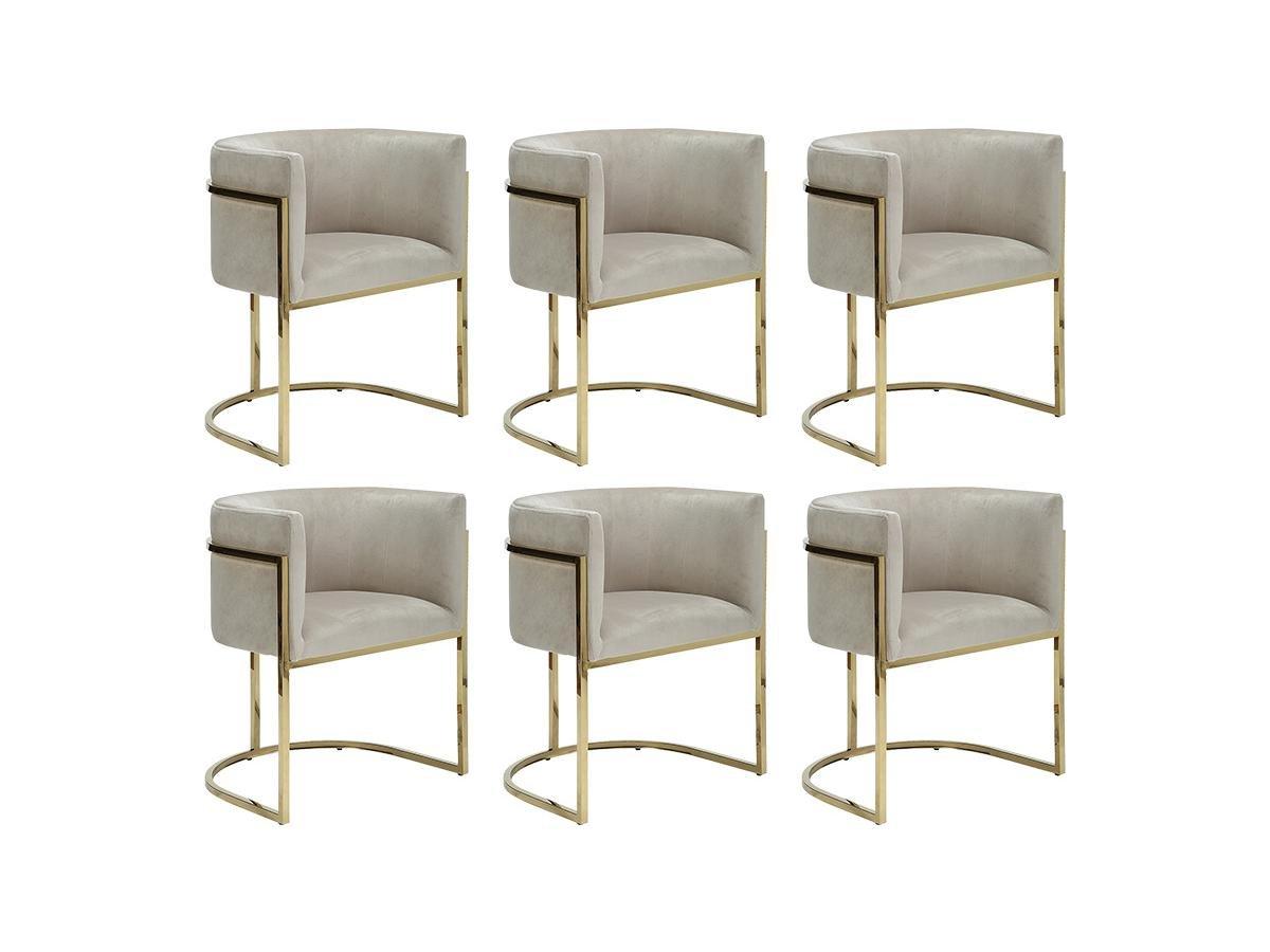 PASCAL MORABITO Lot de 6 chaises avec accoudoirs - Velours et acier inoxydable - Beige et doré - PERIA de Pascal MORABITO