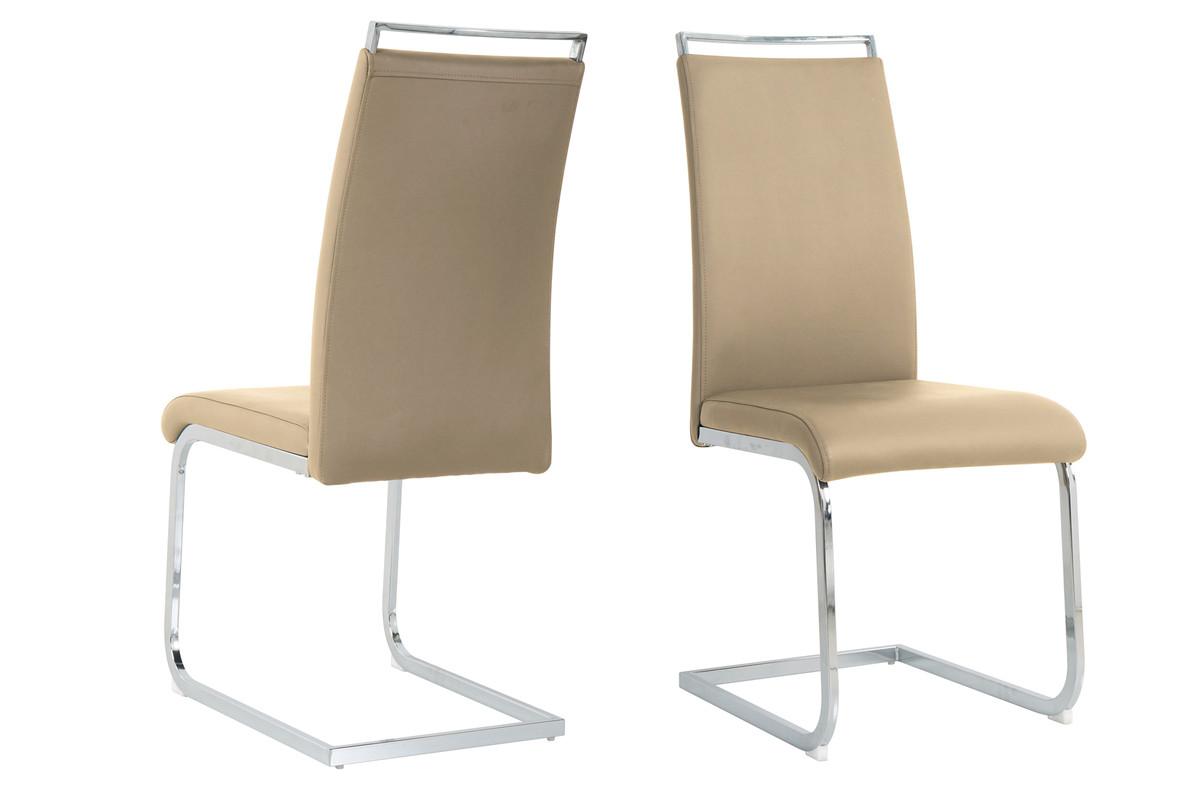 Structure robuste à piétement luge pour une suspension en douceur Suspension par ressorts ondulés de haute qualité pour un confort d'assise durable Pieds métalliques chromés stables et élégants Revêtement en similicuir facile d'entretien et résistant à l'usure Design moderne en taupe et argent Capacité de charge maximale de 120 kg Idéal pour la salle à manger ou le bureau