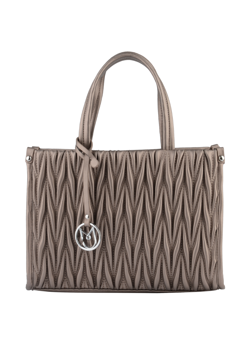 - Un charm en métal argenté en forme de « M » suspendu à l'une des poignées