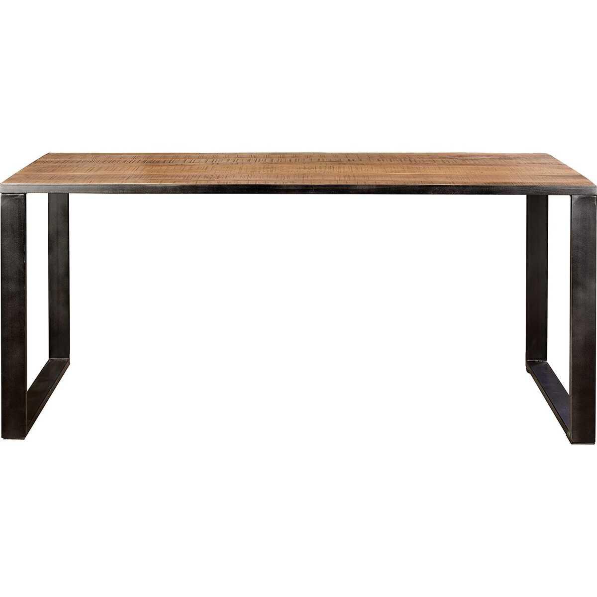 Table de salle à manger en fer renforcé avec plateau en manguier massif, 180 x 90 cm.
