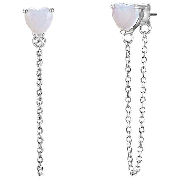 Aimez-vous les boucles d'oreilles extravagantes, mais élégantes et un peu romantiques? Ensuite, ces boucles d'oreilles de l'étiquette mettent en évidence Munich mérite une place dans votre boîte à bijoux. Le motif en forme de cœur est connecté à une chaîne en filigrane, qui se termine sur le connecteur de fermeture. Ainsi, la chaîne oscille sur votre lobe d'oreille dans une douce uform. Fabriqué à partir de 925 argent sterling et protégé par le départ, les bouchons de cœur reçoivent une touche mystérieuse à travers la pierre de lune chatoyante. Un incontournable pour tous les romantiques parmi les fashionistas!
