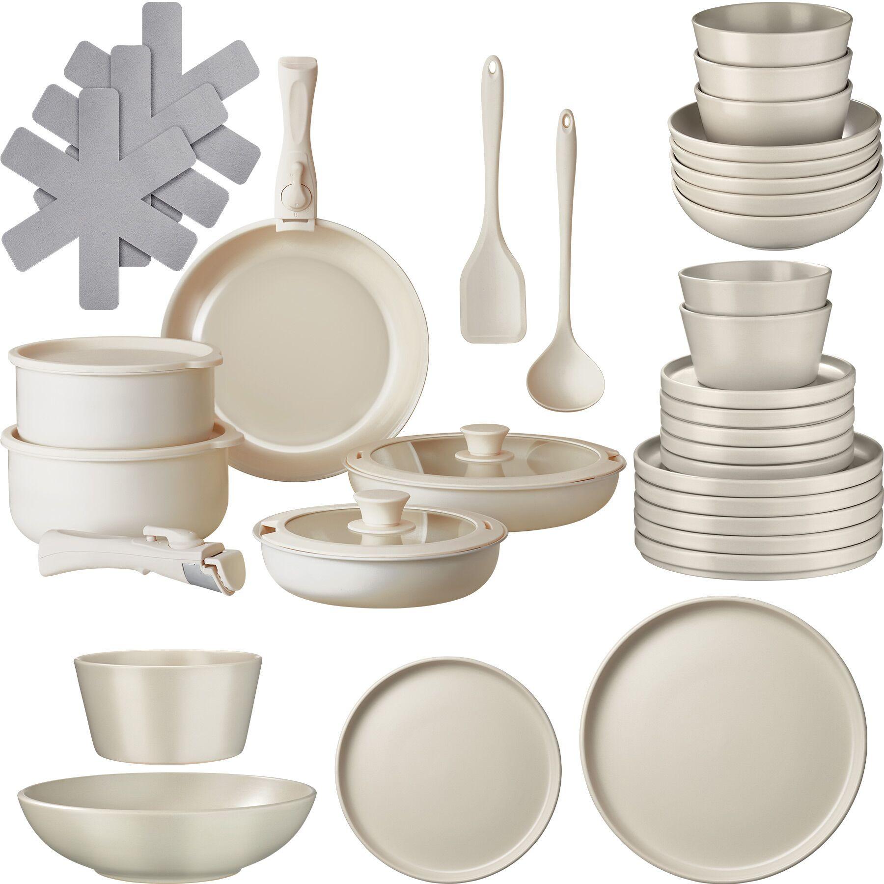 Tectake Ensemble de vaisselle et kit de cuisine UNA/GENUA Ensemble de vaisselle en grès émaillé