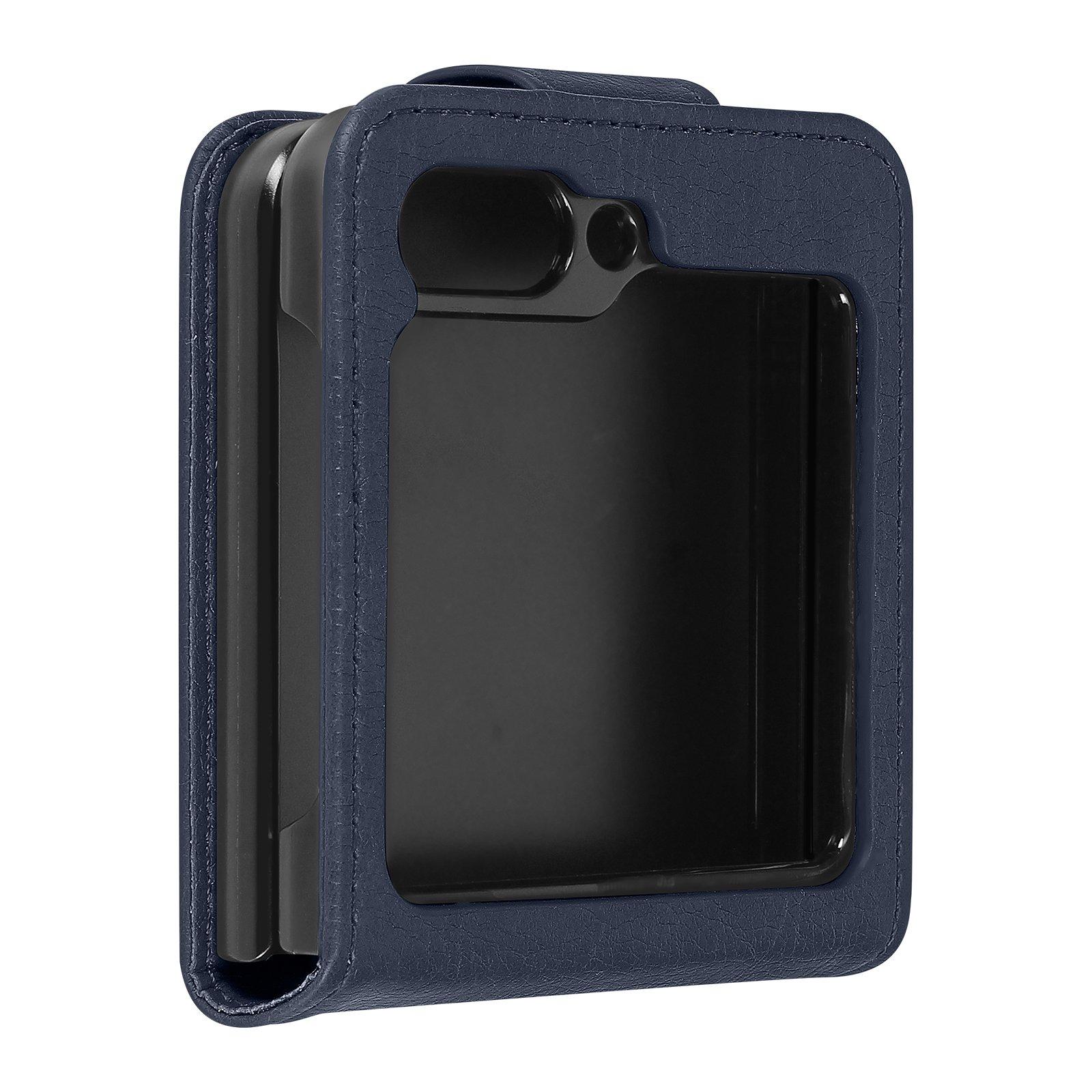 Une coque à clapet éco-cuir bleu nuit, de la série Chesterfield, conçue spécialement pour le Samsung Galaxy Z Flip 5 Protégez l'intégralité de votre smartphone contre les rayures et les chocs Revêtement chic pour un relooking réussi de votre smartphone Languette magnétique permettant de maintenir l'étui fermé pour une sécurité accrue