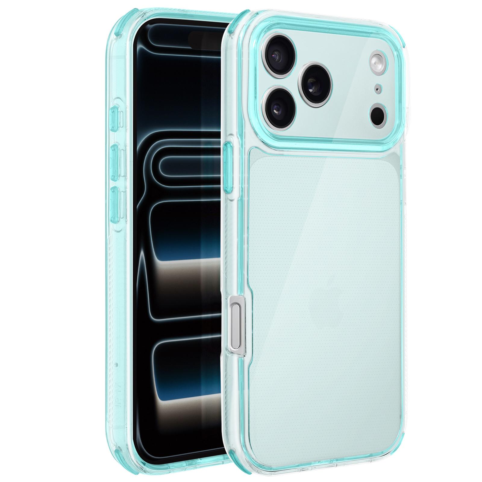 Protégez votre iPhone 17 Pro Max avec cette coque turquoise bi-matière combinant silicone souple et polycarbonate rigide. Ses coins renforcés absorbent efficacement les chocs, tandis que les contours texturés offrent une excellente prise en main antidérapante. Les rebords surélevés protègent lécran et la caméra des contacts directs. Son design transparent conserve le style original du smartphone.