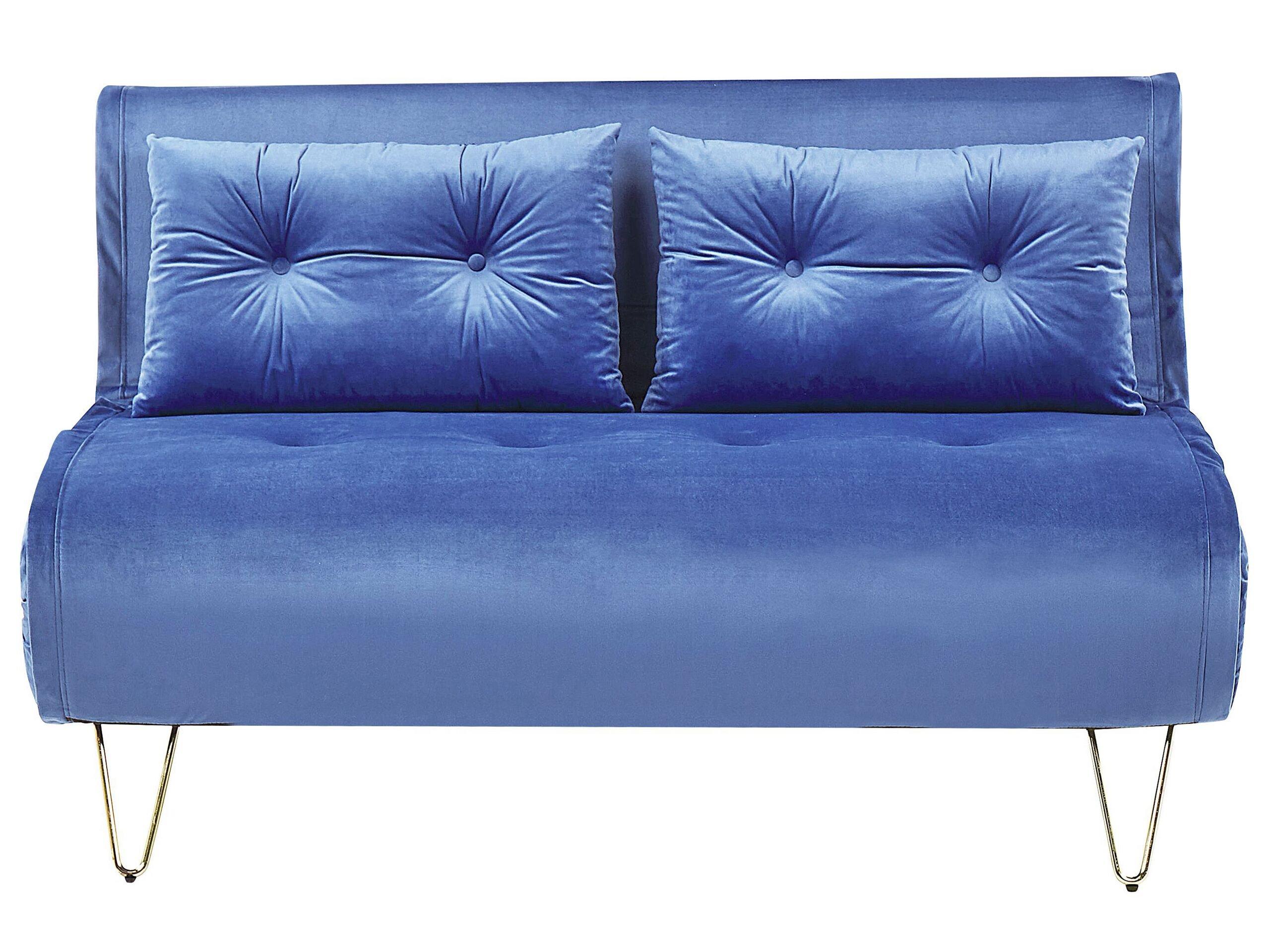 Canapé BZ 2 places au style glamour avec Piètement en métal doré. Apportez une touche glamour à votre intérieur avec ce petit canapé-lit à la fois fonctionnel et séduisant. Son revêtement en velours durable est exceptionnellement doux au toucher, et son épais rembourrage en fait un meuble vraiment confortable. L'aspect sophistiqué du canapé est accentué par les pieds en métal doré et le coussin à boutons avec housse amovible ajoute une touche de charme douillet. De plus, grâce à la fonction de couchage facile à utiliser, vous n'avez pas à vous inquiéter lorsque vos invités veulent dormir chez vous.