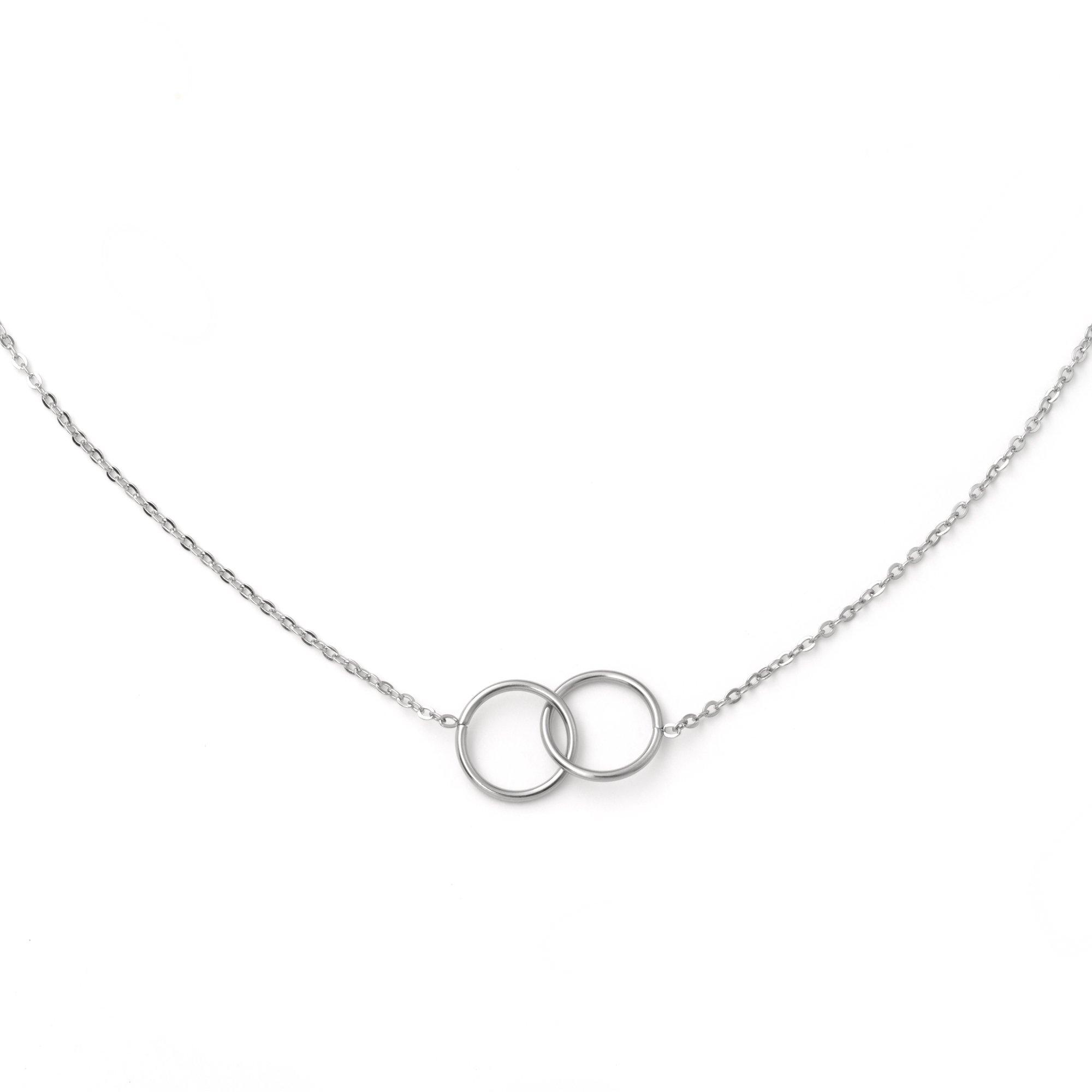 Ce n'est pas toujours une alliance qui symbolise l'union de deux personnes. Ce collier avec des anneaux entrelacés parle également de grands sentiments. C'est une manière moderne d'afficher son statut de couple et elle s'accorde à merveille avec le look superposé en vogue, où tous les symboles et porte-bonheur préférés trouvent leur place en même temps.