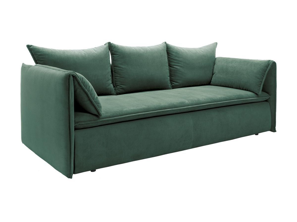 Vente-unique, Canapé convertible 3 places en velours côtelé vert TEODORA