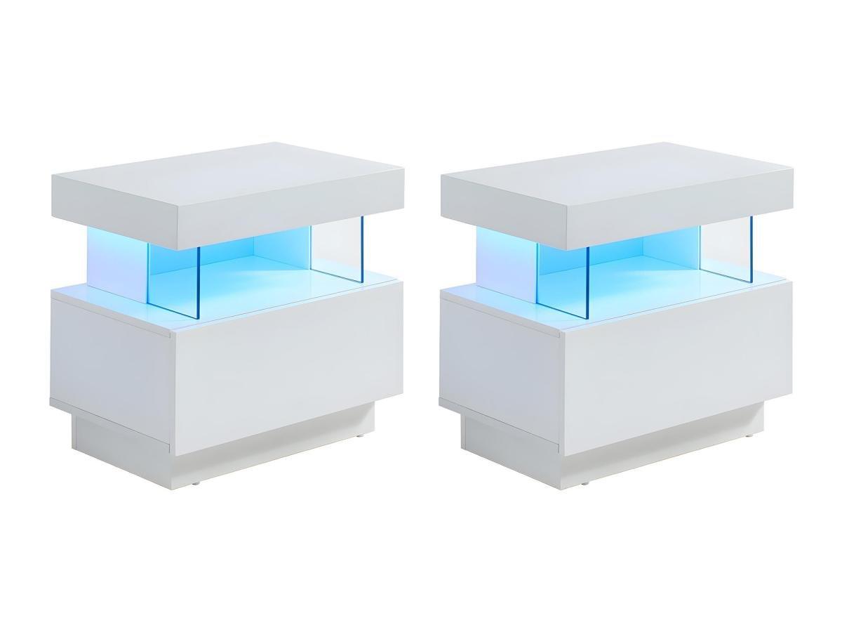 Vente-unique, Lot de 2 tables de chevet 1 tiroir et 1 niche - Avec LEDs - MDF - Blanc laqué - FABIO II