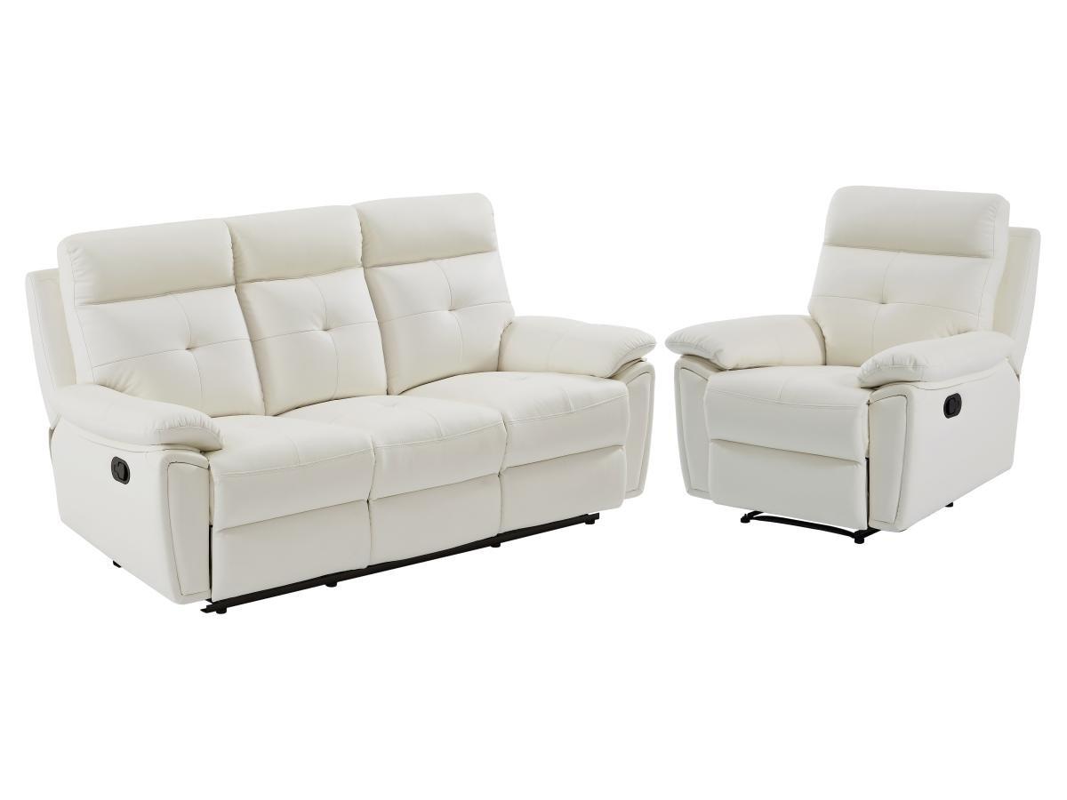 Vente-unique, Canapé 3 places et fauteuil relax en cuir blanc VINETA