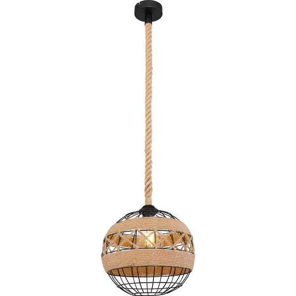 Lampe à suspension métal noir, corde de chanvre marron, D: 300, H: 1200, hors 1xE27 60W 230V