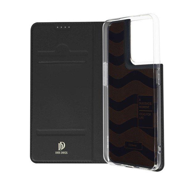 Étui porte-carte pour Oppo Reno 8 5G de Dux Ducis. Conçu en éco-cuir avec un effet satiné. Fonction support vidéo intégrée. Rangement intérieur pour carte. Fonctions accessibles. Coque de maintien souple. Rabat magnétique.