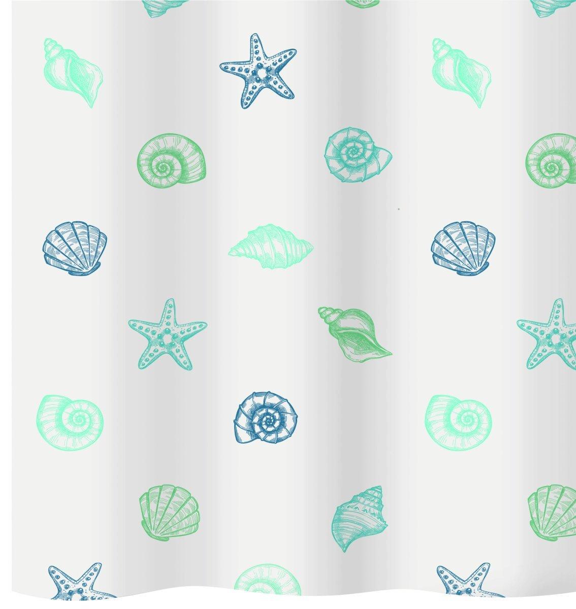diaqua® Rideau de douche textile Mare 180 X 180 CM ¦ CH - Pour une ambiance maritime dans la salle de bain ! Rideau de douche en tissu au design maritime en tissu polyester hydrofuge de haute qualité. Grâce au ruban de lestage intégré en polypropylène (sans plomb), le rideau tombe sans flottement. Le rideau de douche dispose de 12 illets adaptés aux anneaux de rideau de douche standard ou aux rails de rideau de douche. La taille de 180x180cm est idéale pour une utilisation dans les baignoires ou pour les tringles de rideau de douche dans le coin.