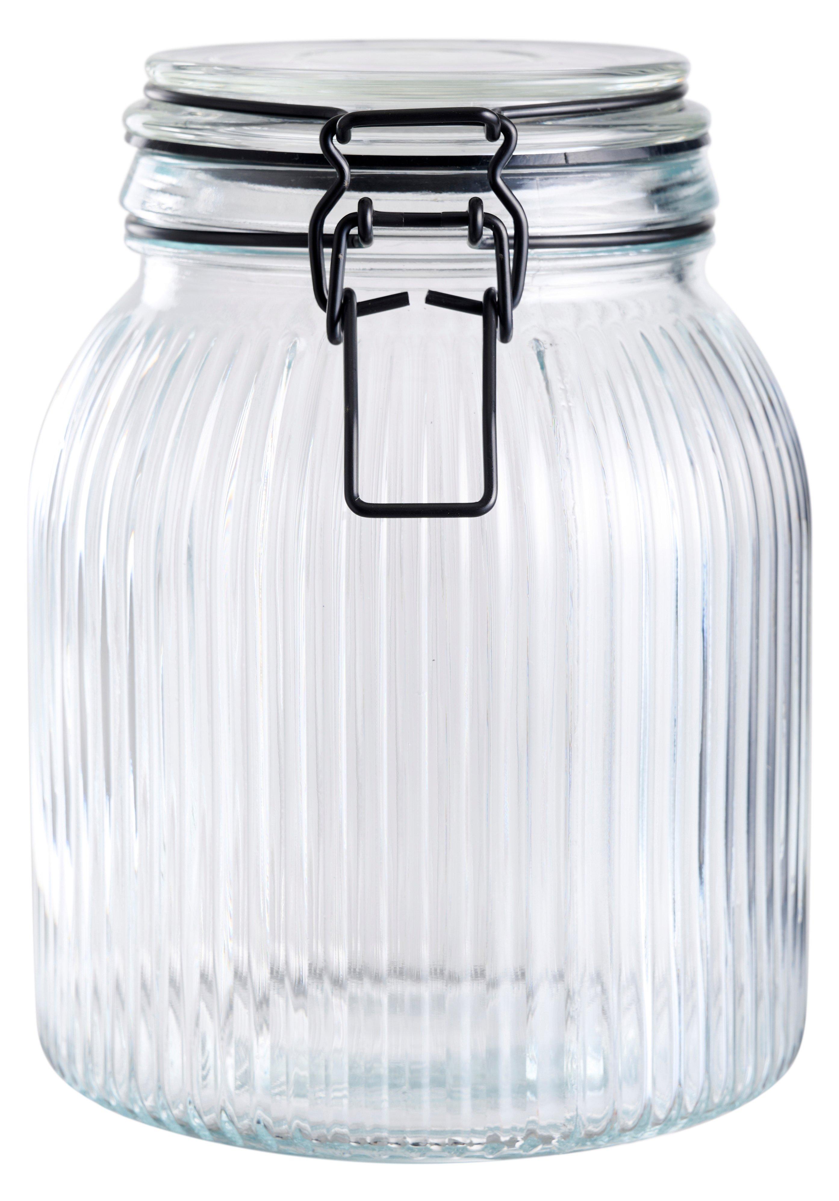 Organisez votre cuisine avec le pratique bocal de rangement 1,4l ! Le pot Mason de haute qualité est renforcé de métal et de silicone et est donc particulièrement résistant. Avec une capacité de 1,4 litre, il offre suffisamment d'espace pour les épices, les grains de café, les sachets de thé ou d'autres petits objets. Le système de fermeture hermétique garde le contenu frais et le bocal en verre va au lave-vaisselle. Grâce à son design moderne, le bocal de stockage de 1,4 l est un véritable accroche-regard dans chaque cuisine et un excellent ajout à chaque foyer.