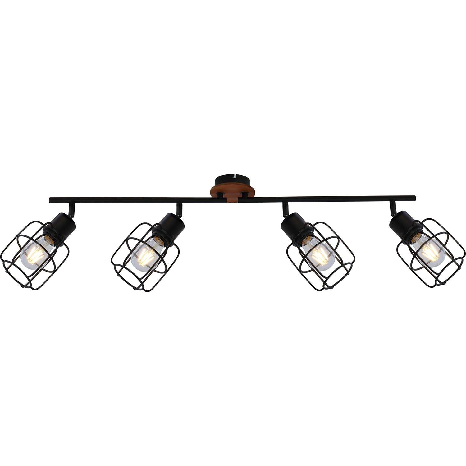Spot métal noir, bois marron, métal noir, mobile, LxlxH : 800x110x240mm, sauf 4x E27 40W 230V.