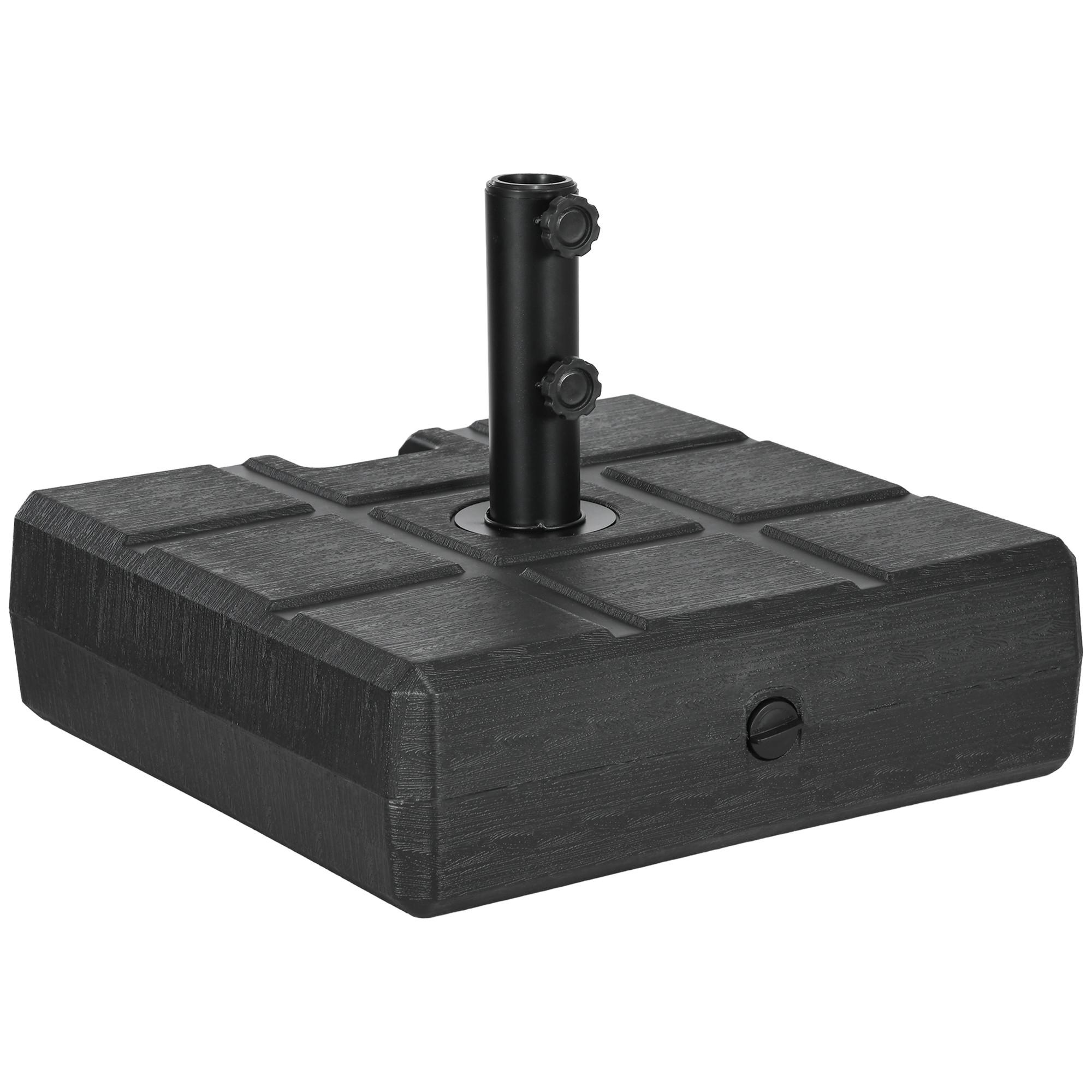 Le pied de parasol en plastique Outsunny n'est pas seulement un élément décoratif, mais sécurise également efficacement votre parasol. Le pied de parasol rechargeable peut contenir jusqu'à 30 kg d'eau ou 40 kg de sable, ce qui rend le pied de parasol de jardin particulièrement lourd. La coque robuste en PEHD et le poteau central en métal thermolaqué avec deux vis de verrouillage du porte-parapluie garantissent que votre parapluie tient fermement.