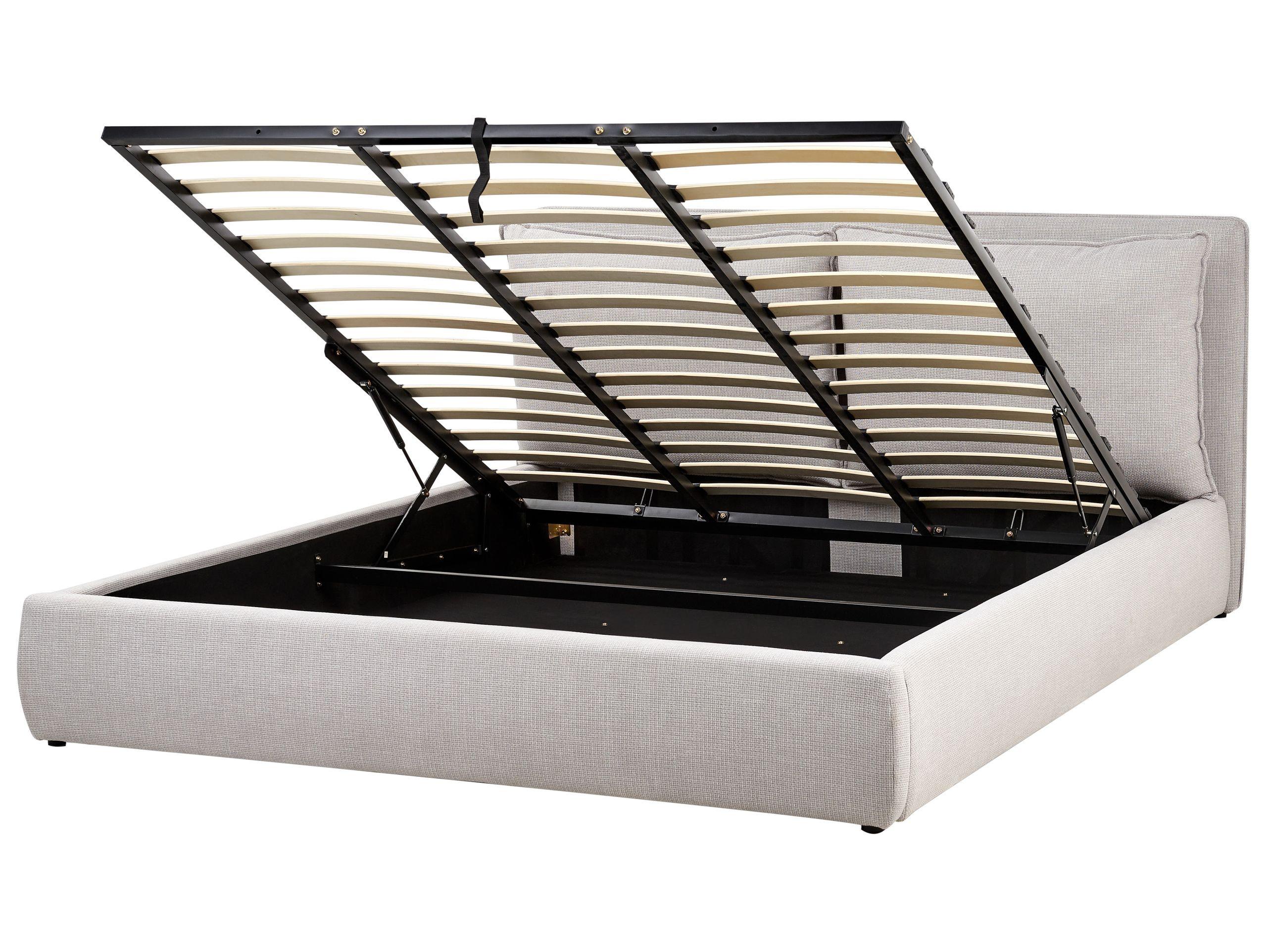 Cadre de lit tapissé avec rangement. Prenez soin de la qualité de votre sommeil et choisissez un lit fonctionnel, qui apportera également une atmosphère chaleureuse à votre intérieur. Le produit est revêtu d'un matériau robuste avec une structure en tissu, extrêmement agréable au toucher. Le cadre intégré en bois offre un soutien adéquat au matelas, ce qui vous permet de vous détendre pleinement après une dure journée. Le lit est équipé d'un espace de rangement où vous pouvez placer des coussins et des couvertures. Si vous aimez vous plonger dans le monde de la fiction, le dossier haut, recouvert de coussins moelleux à housse amovible, garantit un support confortable pour les lectures du soir.