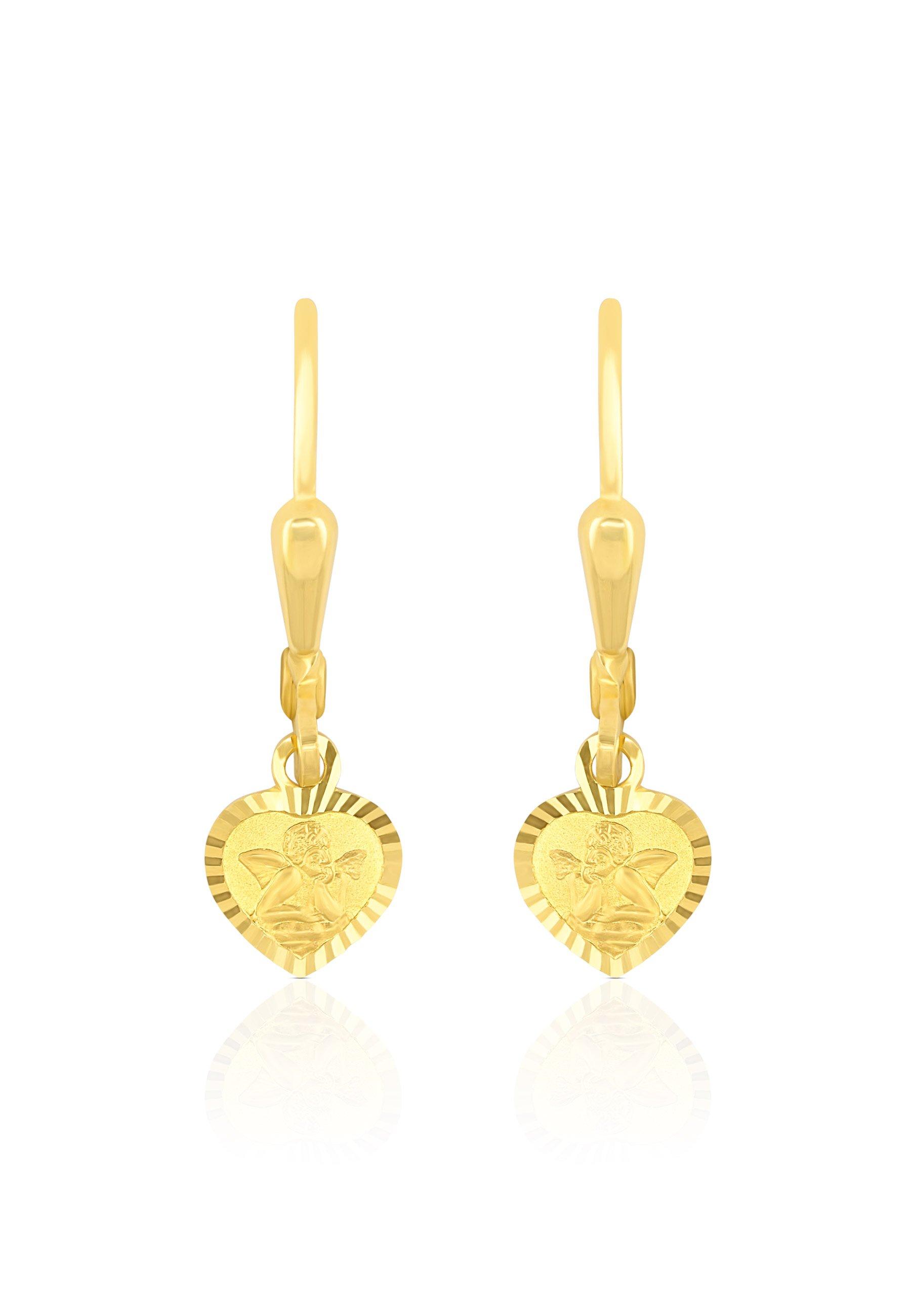 MUAU Schmuck, Boucle d'oreille coeur ange en or jaune 750 brins 24mm