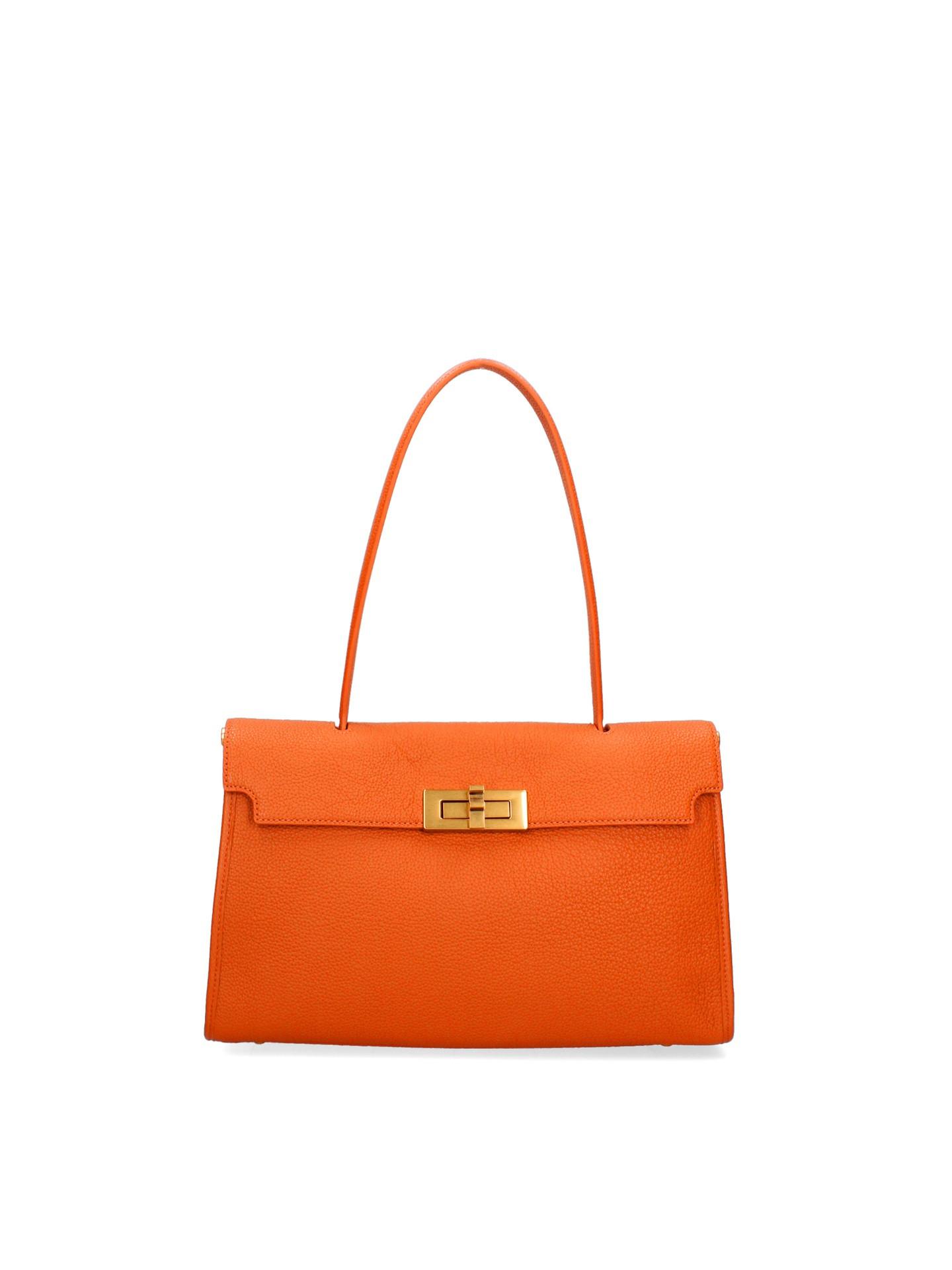 Ce sac à bandoulière élégant présente une silhouette structurée et un design sophistiqué, ce qui en fait un accessoire polyvalent pour diverses occasions. Le sac est équipé d'une fermeture à rabat sécurisée et d'un fermoir métallique doré distinctif, ajoutant une touche de luxe à son apparence. Sa poignée supérieure unique permet un port confortable à l'épaule ou à la main.