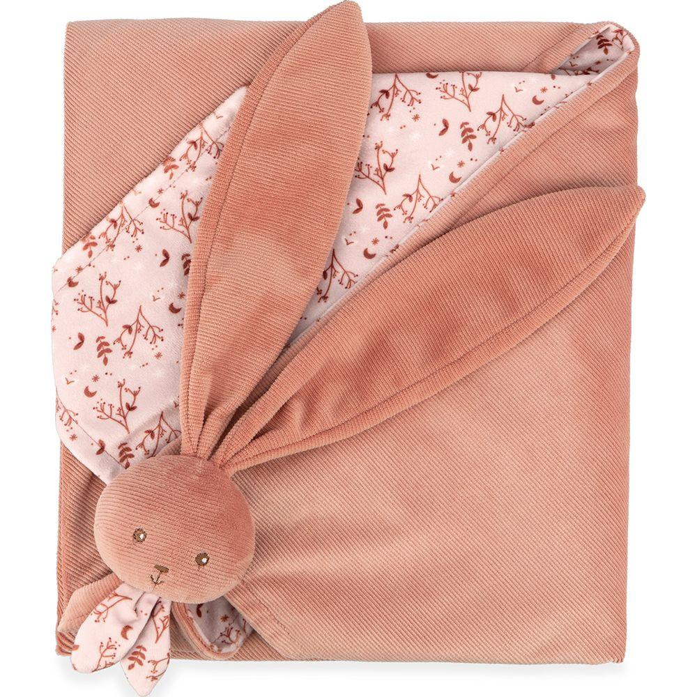 Offrez à votre bébé cette couverture en terracotta douce et réconfortante. Elle est dotée dune tête de lapin aux longues oreilles, ce qui permet de laccrocher partout et de ne jamais la perdre. Les magnifiques tissus en microvelours et en velours côtelé rendent cette couverture aussi douillette quune étreinte. Les motifs dun côté apportent une touche raffinée à la couverture. Elle est composée dau moins 90 % de matériaux recyclés et de rembourrage recyclé, ce qui en fait le cadeau de naissance idéal pour vos proches. 70 x 80 cm. Lavable en machine à 30 °C. Dès la naissance.