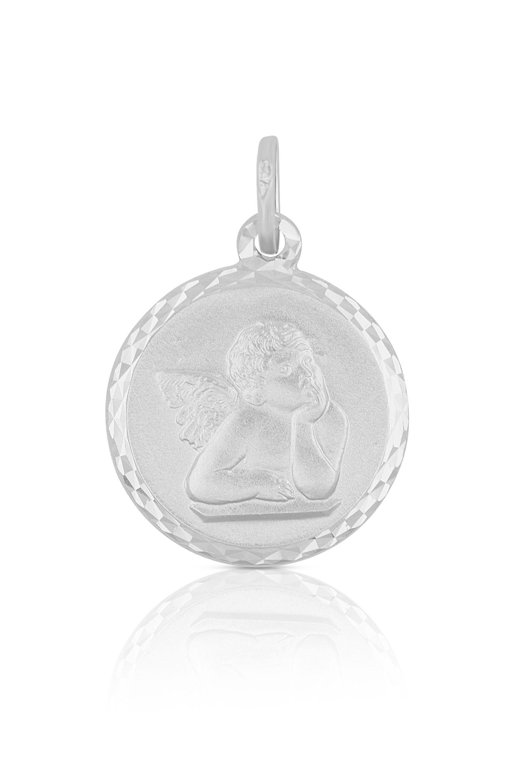 MUAU Schmuck Pendentif médaille ange en or blanc 750, 14mm