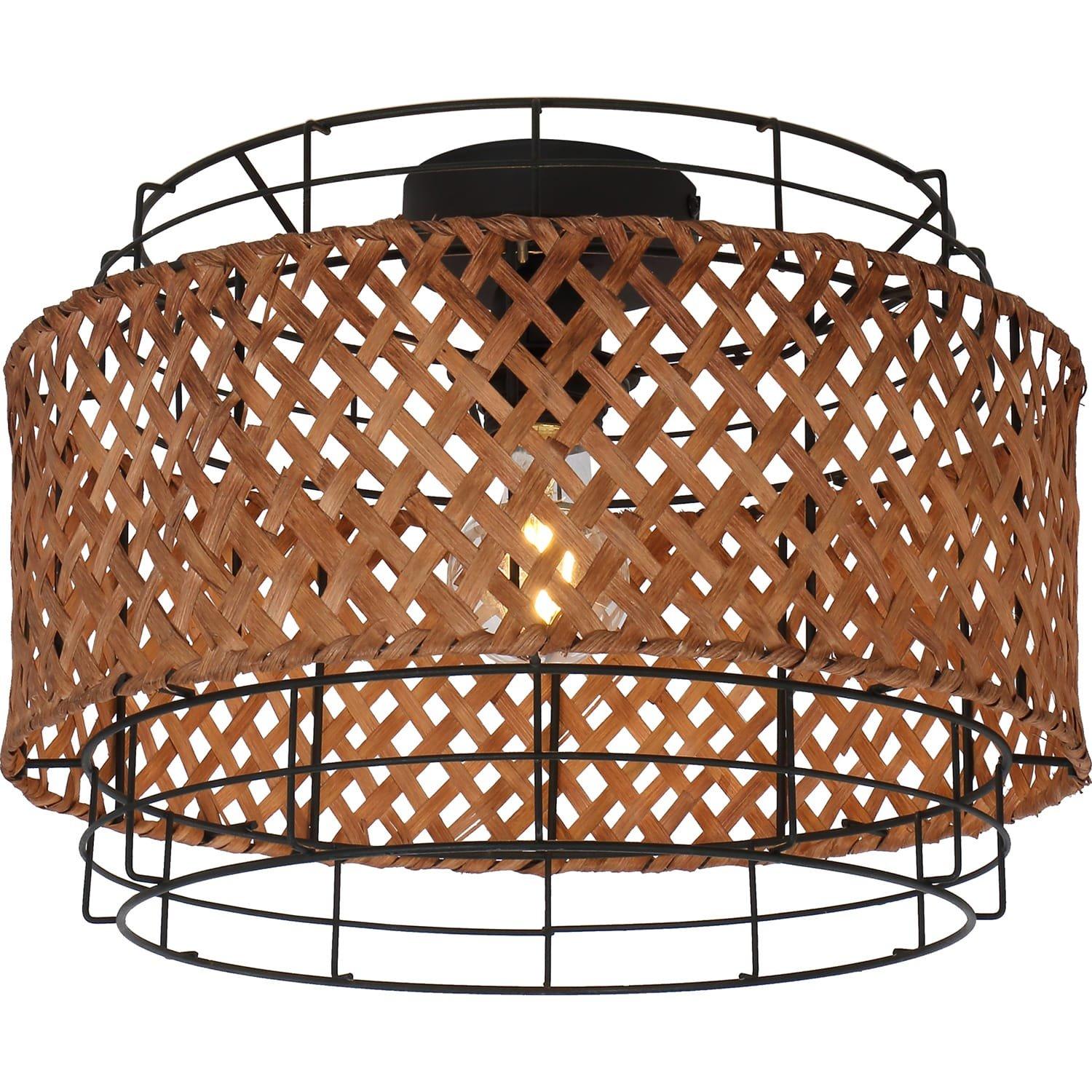 Plafonnier métal noir, bambou foncé, : 350mm, H: 245mm, exclu 1x E27 40W 230V.