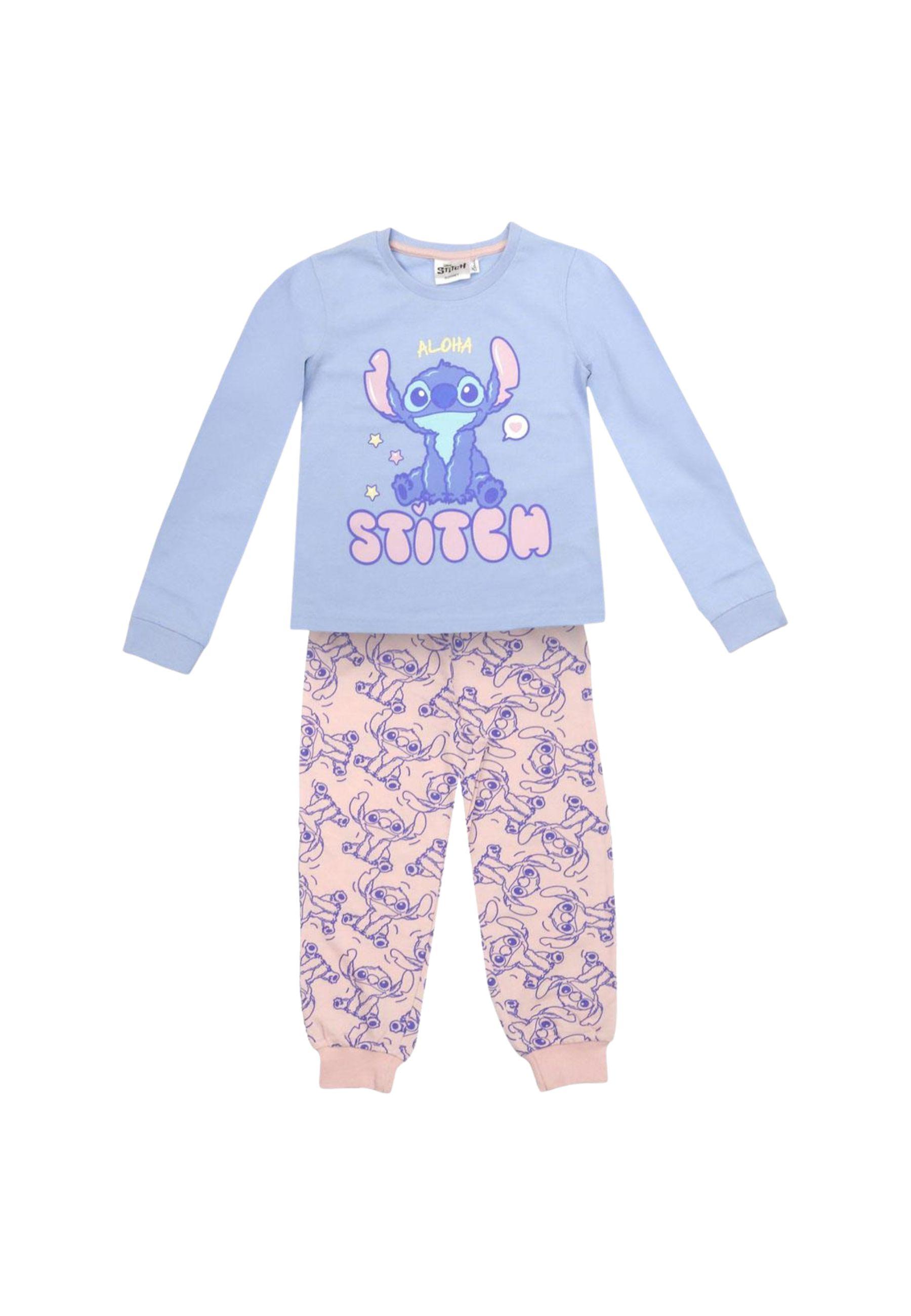 Pyjama long pour enfant en tissu jersey simple doux avec un design Stitch. Parfait pour dormir et se détendre à la maison. Léger, respirant et agréable pour la peau, idéal comme tenue de nuit quotidienne pour les jeunes fans de Stitch.