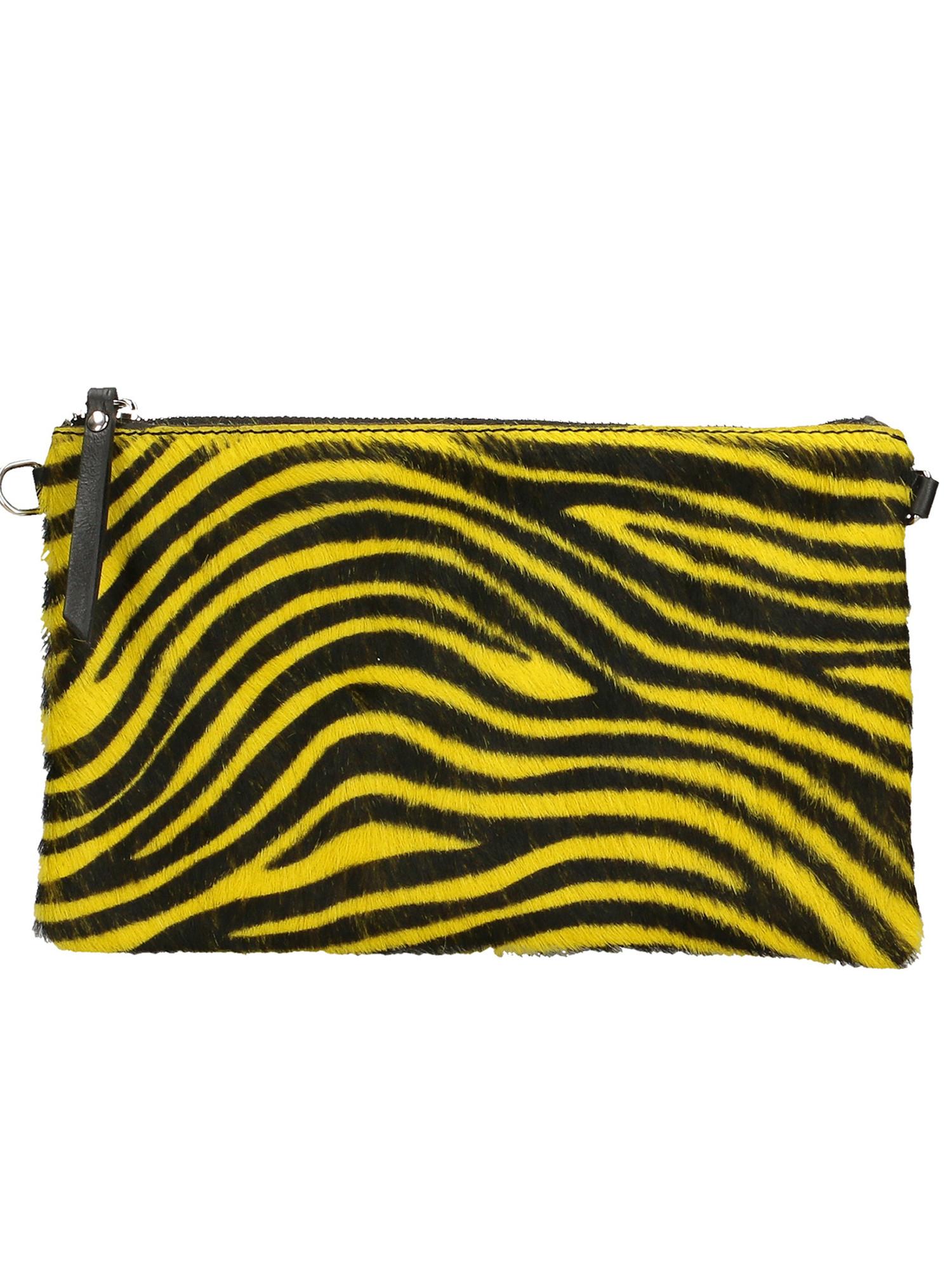 Ce sac bandoulière est fabriqué en cuir de vachette véritable et présente un imprimé zèbre saisissant, ajoutant une touche audacieuse à toute tenue. Le design comprend une fermeture éclair sécurisée pour garder les effets personnels en sécurité.