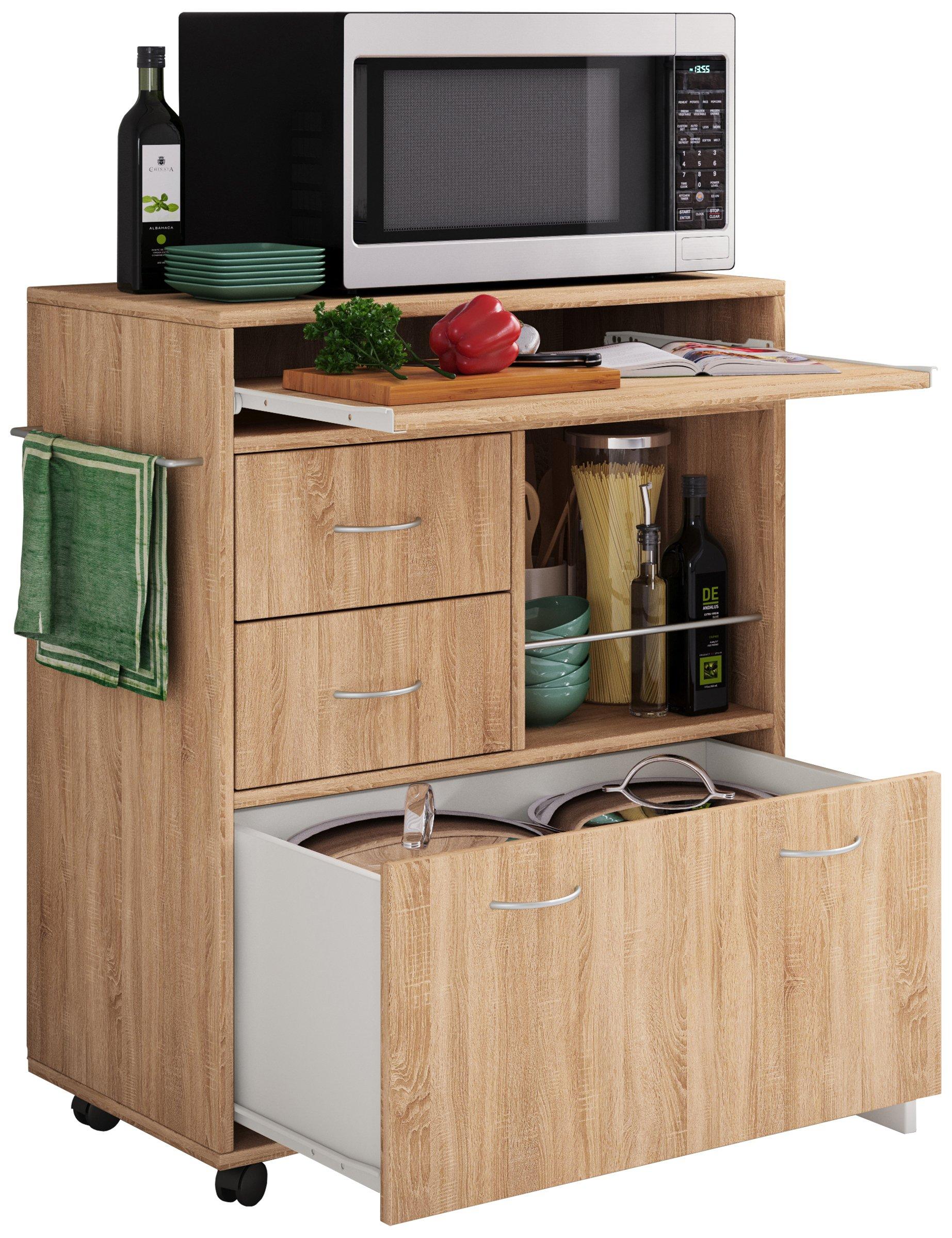 VCM, Chariot de cuisine en bois Chariot de service Chariot de service à roulettes Roulettes Tiroir Kicha