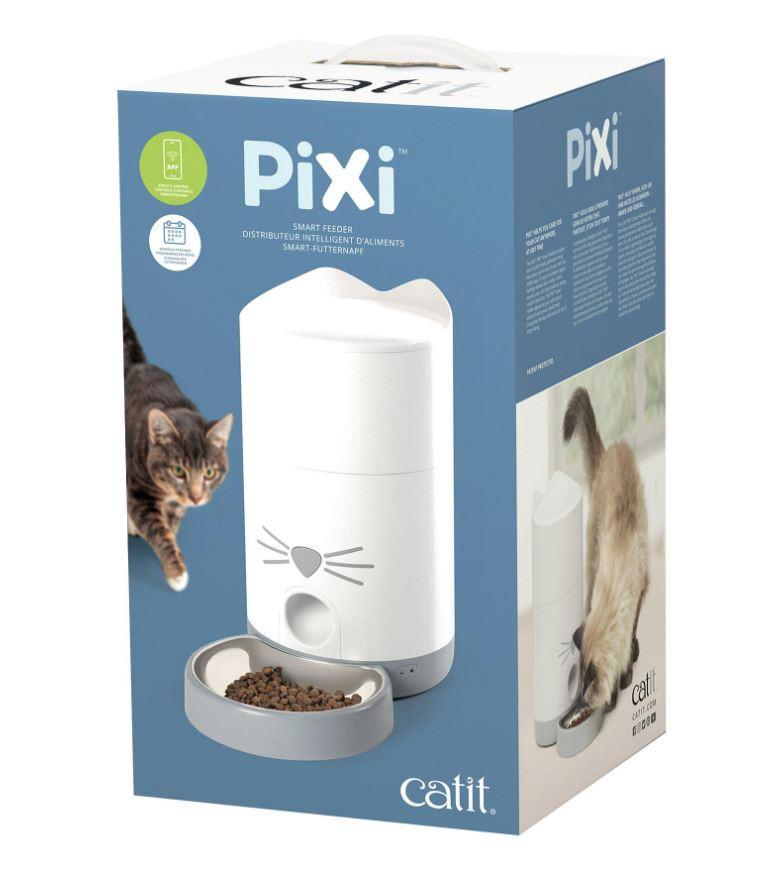 Catit Pixi Smart Feeder Vous en avez assez de la routine de l'alimentation ? Le distributeur automatique de nourriture intelligent Catit PIXI nourrit votre chat avec la quantité exacte de nourriture au moment exact où vous en avez besoin, même si vous n'êtes pas à la maison.