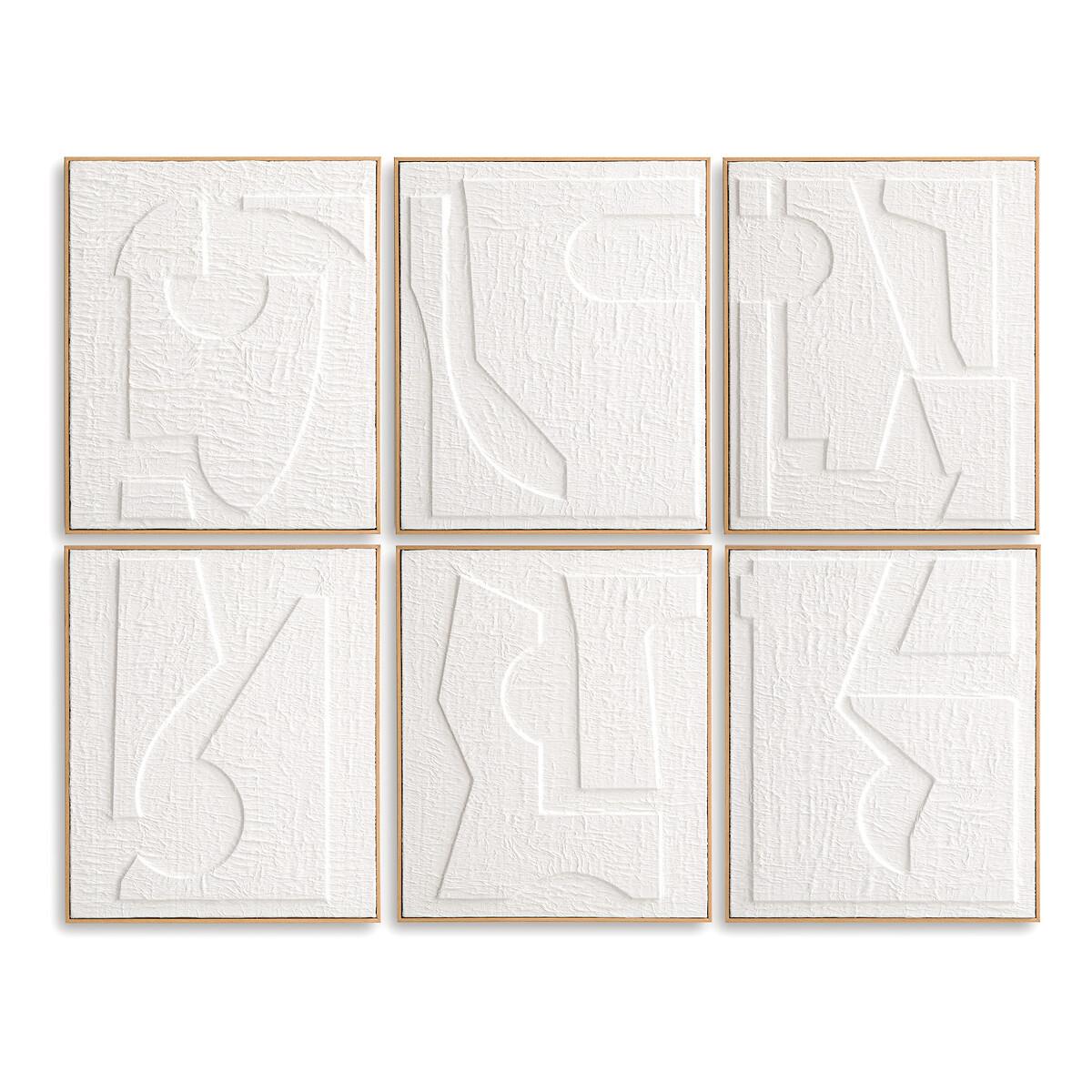 De fabrication artisanale, les 6 cadres Hekatos forment une composition abstraite dart mural, dont le motif se poursuit dun élément à lautre.