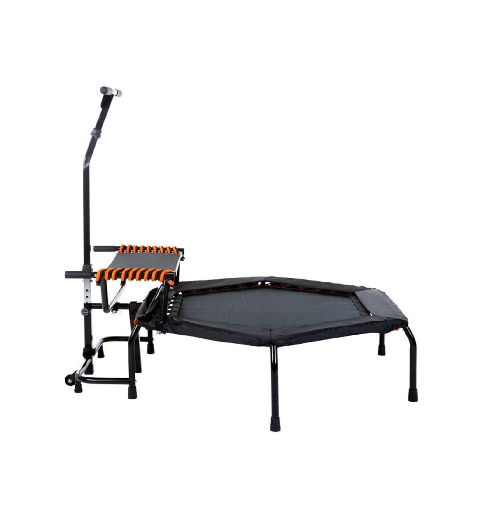 Diamètre : 87 cm, Sport : FitnessStep-board avec surface antidérapanteTrampoline avec step-board flexible pour lentraînement des muscles fessiersPoignée réglable en hauteurCombinaison de step-aérobic et dentraînement au trampolineDémontage du step-board en quelques gestesPeut être facilement et de manière compacte rangé grâce à la fonction pliable et aux roulettes de transport