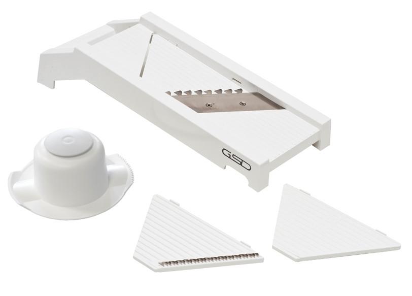 Plastique, avec manche et couteau fixe en acier chromé, inserts interchangeables pour disques, grandes et petites baguettes, avec porte-restes