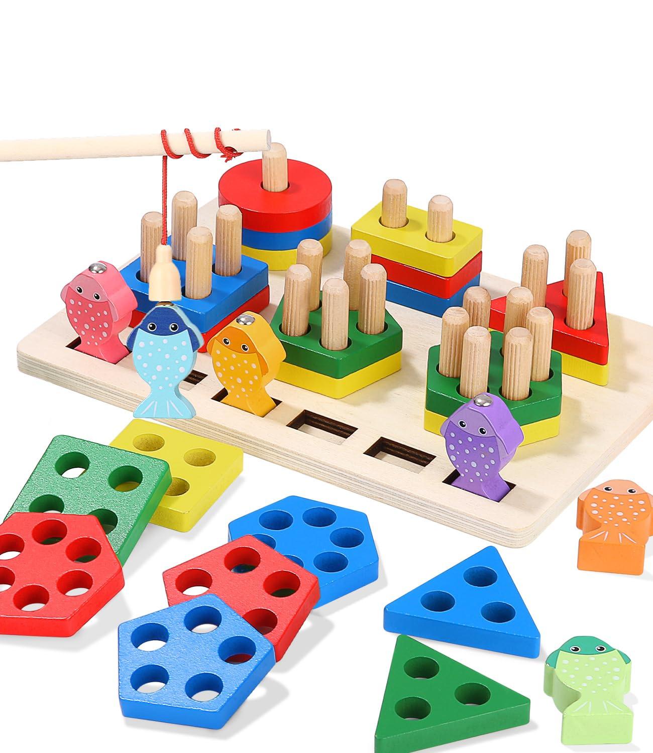 Avec 6 poissons colorés et 6 blocs de formes différentes (4 colorés), notre jouet waldorf pour bébé est une combinaison de jeu de pêche et de tri & ; jeu d'empilage qui est très amusant pour les enfants. Idéal pour jouer à la maison, à la crèche ou en déplacement. Nos jouets en bois comportent des blocs géométriques de différentes tailles, couleurs et formes et encouragent la motricité fine, la coordination œil-main et la résolution de problèmes. Parfaits pour apprendre les couleurs, les formes et à compter. Notre jouet de tri et d'empilage amélioré est doté d'une peinture non toxique à base d'eau, d'arêtes lisses sans bavures et de gros blocs pour garantir la sécurité des enfants. Il est fabriqué à partir de bois sélectionnés et robustes et est donc conçu pour durer. Avec 24 blocs de forme dans 4 gammes de couleurs et 6 poissons colorés, notre jouet de motricité offre des possibilités infinies de jeu pratique et imaginatif. Triez par forme et par couleur, construisez différents bâtiments ou motifs et laissez votre enfant découvrir encore plus de jeux. * Taille-22.0 x 14.7 x 4.0 cm