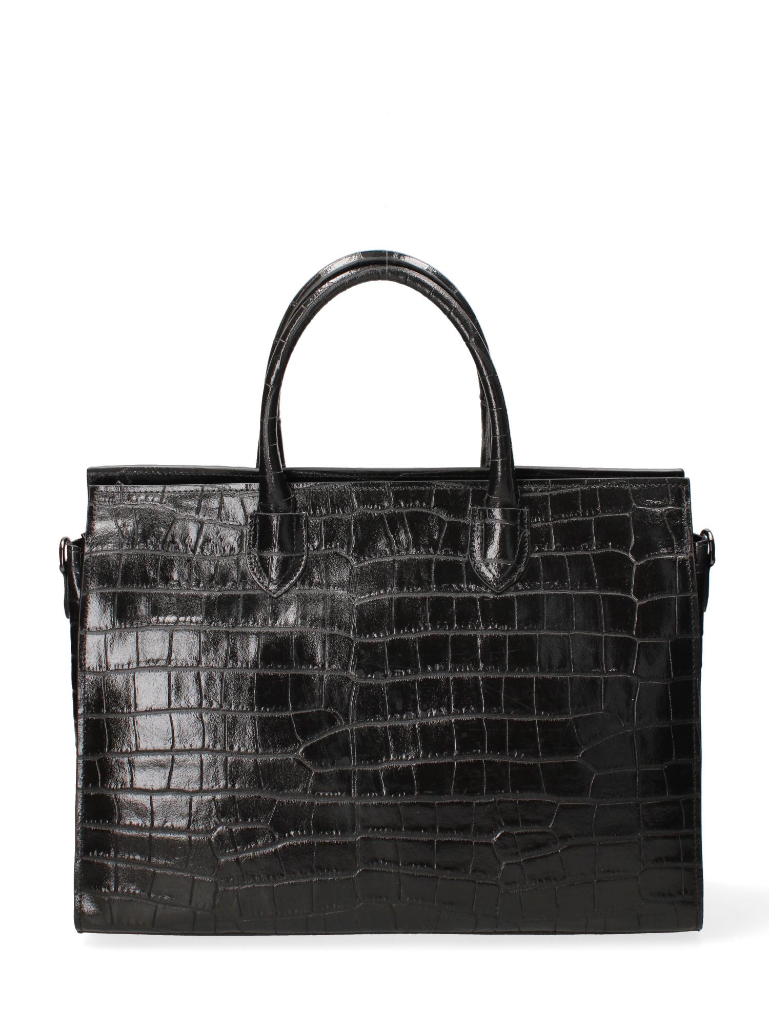 Ce sac à main présente une texture sophistiquée gaufrée effet crocodile, offrant un accessoire luxueux et élégant pour diverses occasions. Le design comprend des poignées robustes pour un transport confortable et un intérieur spacieux pour accueillir les essentiels quotidiens.