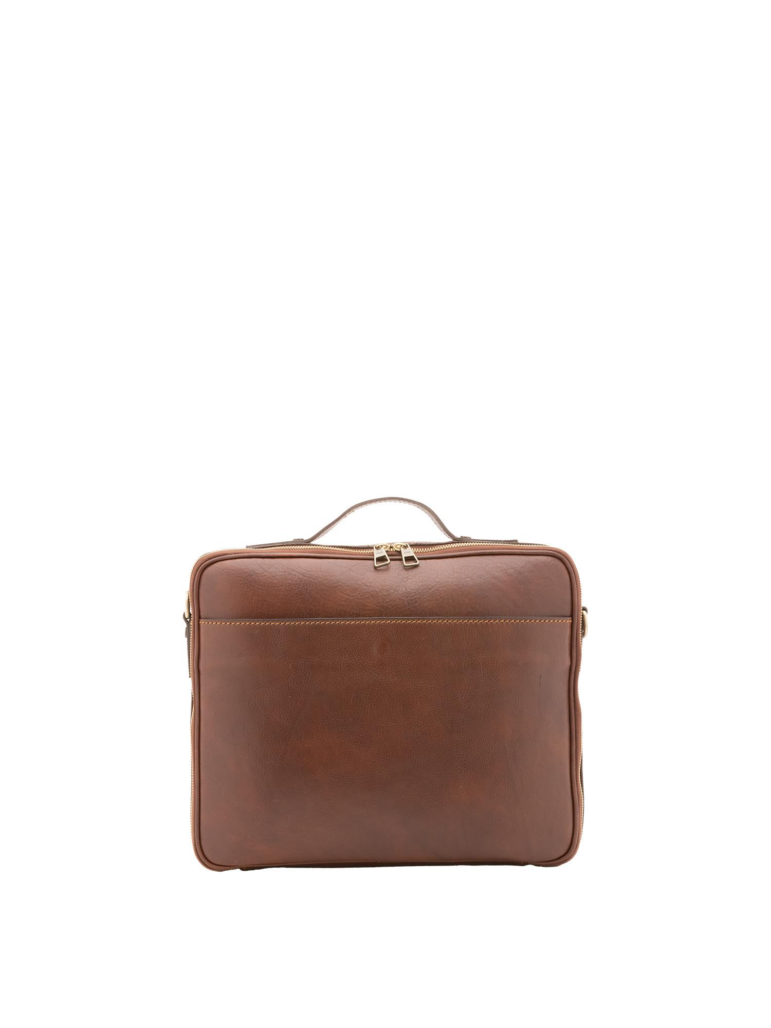 Sac à main unisexe. La fermeture est avec zip. Les poches intérieures sont une ouverte. Les poches extérieures sont ouvertes sur le devant. La bandoulière est réglable et amovible en cuir. La poignée est en cuir. Il y a un compartiment interne. Le matériau extérieur est 100 % cuir véritable. À l'intérieur, il est doublé de coton. Dimensions : 38x32x6 cm. Fabriqué en Italie