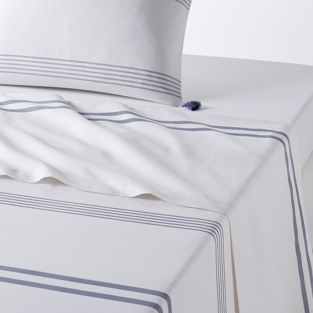 Inspirée du linge de Hammam, la parure RIAD adopte le style fouta avec ses fines rayures imprimées et sa finition pompons. Le coton fait partie de notre quotidien. On l'aime pour sa souplesse et sa douceur. Facile à vivre, il est idéal pour les lits des petits comme des grands.