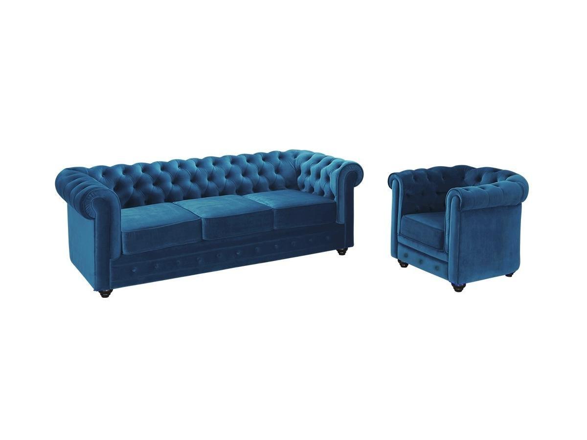 Vente-unique, Canapé 3 places fauteuil CHESTERFIELD Velours