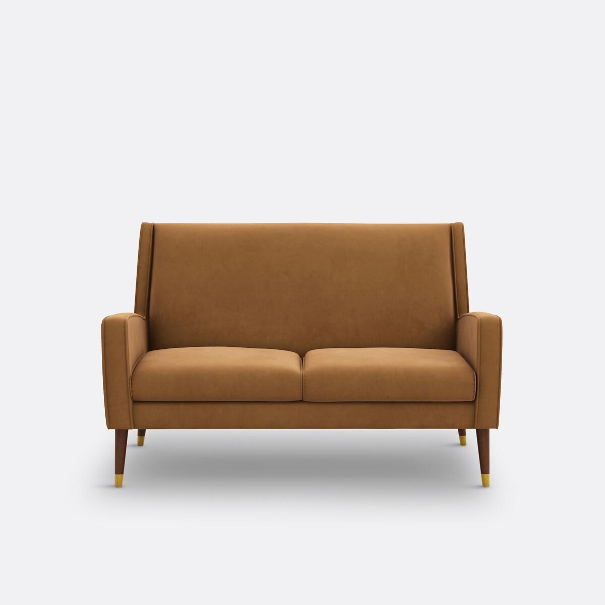 Le canapé (Y) 2 places : des lignes simples, des pointes de pieds finition laiton, un revêtement souligné par un piping chic et délicat...