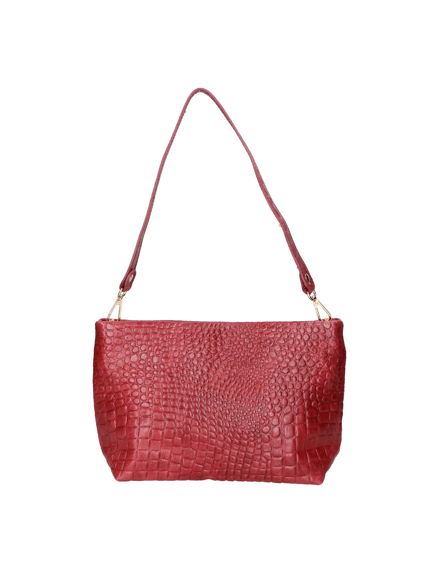 Ce sac à bandoulière pour femme est confectionné en cuir véritable avec un élégant gaufrage crocodile. Il est doté d'une petite bandoulière tricotée amovible, offrant des options de port polyvalentes. C'est un produit italien artisanal, fabriqué en Italie.