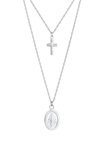 Fascinantes et féminines - sont ces deux chaînes à maillons torsadés à l'aspect superposé fait en 925/1000 argent massif / 925/1000 argent plaqué d'or et leurs pendentifs religieux. Les symboles simples et élégants, une croix et une image de la Vierge Marie, font de ce bijou le compagnon idéal de la vie quotidienne. L'ensemble de bijoux harmonieux met un accent fidèle et souligne votre style personnel. Portez le collier pour des occasions religieuses ou pour attirer l'attention dans un look vintage.
