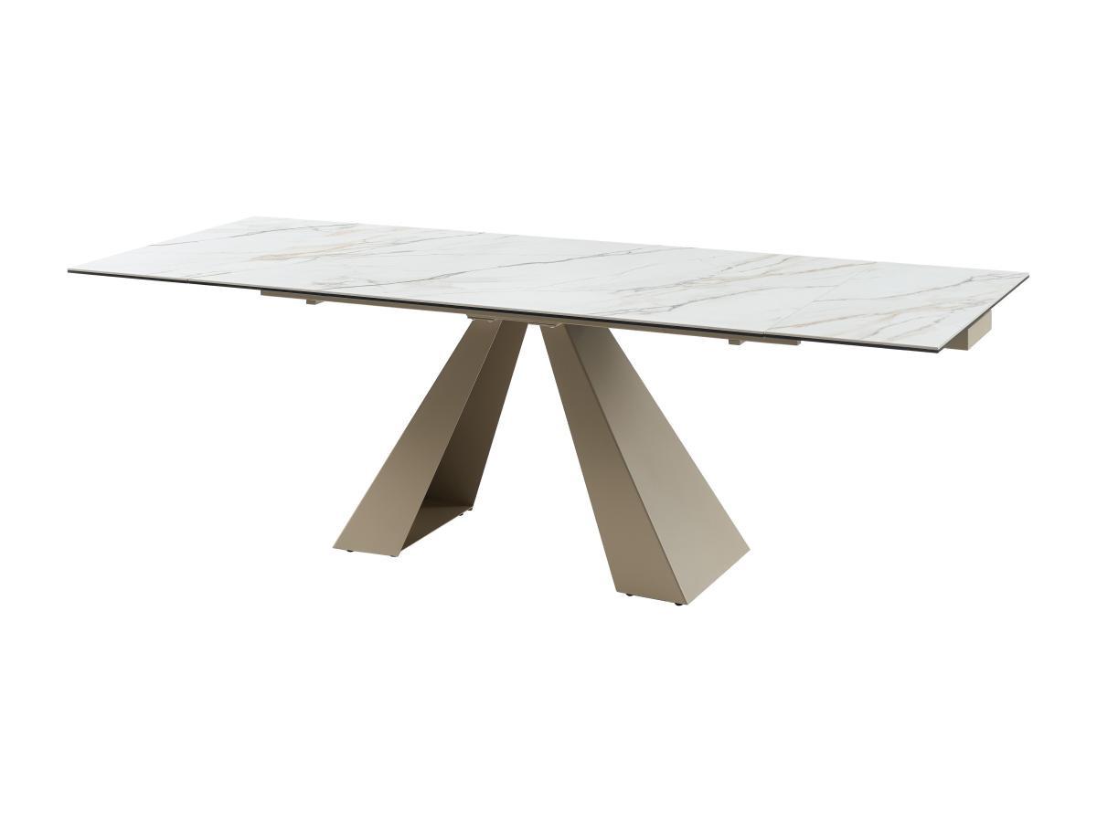 Maison Céphy, Table à manger extensible 6 à 10 personnes en verre trempé, céramique et métal - Effet marbre blanc et beige - LOZIPA de Maison Céphy