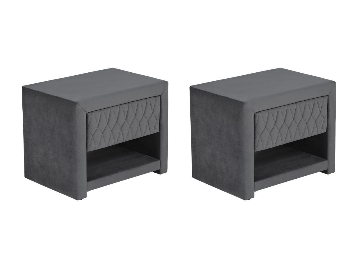 Vente-unique, Lot de 2 tables de chevet - 1 tiroir et 1 niche - Tissu velours - Gris - DANIELE