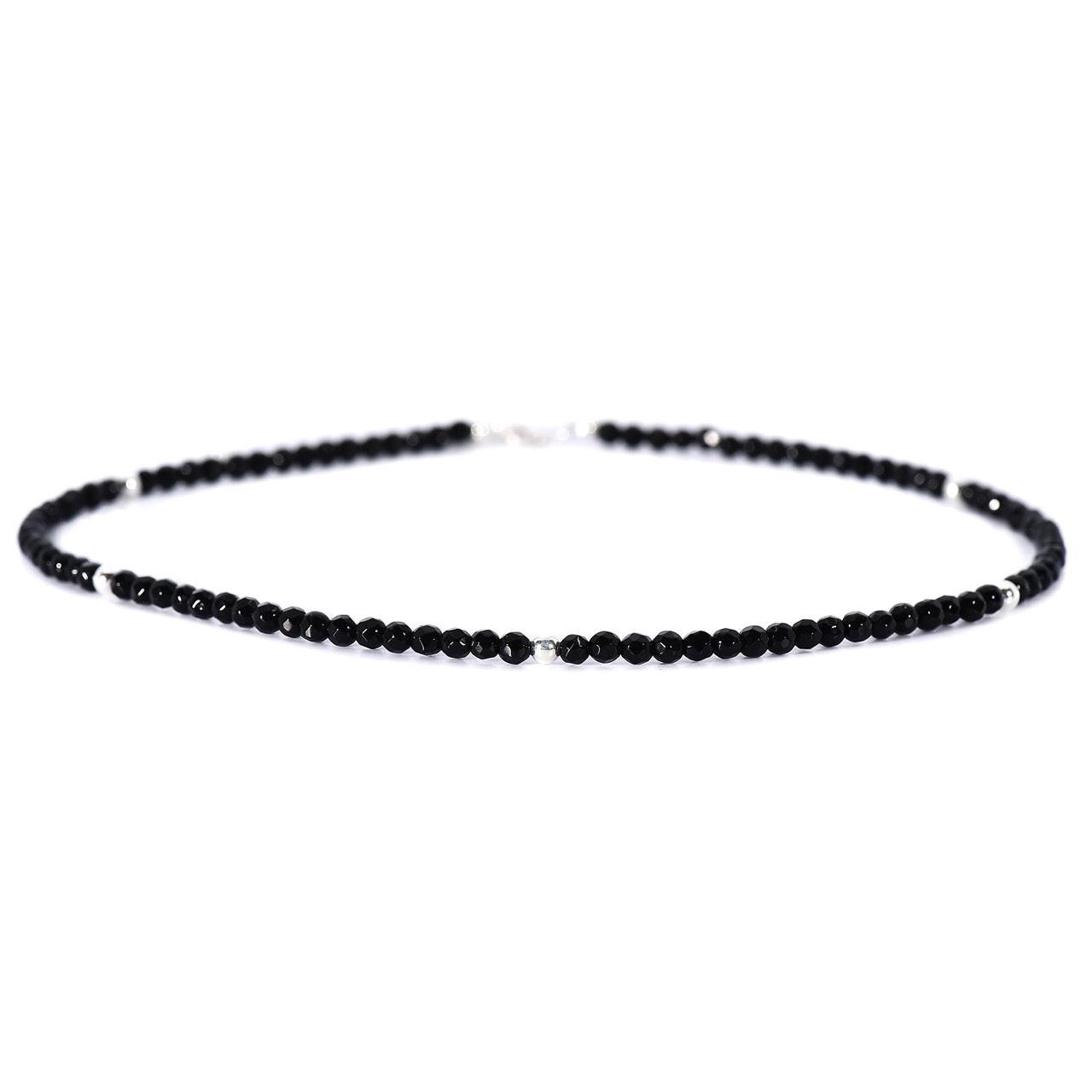 Collier pour femme orné de pierres d'onyx facettées et d'argent sterling 925