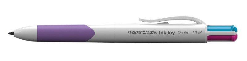 INKJOY QUATRO - Kugelschreiber Der Druck-Kugelschreiber von Papermate verfügt über vier verschiedene Farben. Dank der Gummigriffzone erleben Sie einen maximalen Schreibkomfort. Vierfarben Kugelschreiber Die gewünschte Schreibfarbe wird durch Drücken des entsprechenden Knopfes ausgewählt Kunststoffgehäuse mit gummierter Griffzone Kunststoff Clip