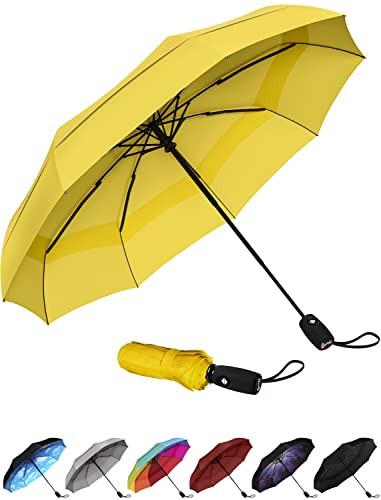 * Parapluie de voyage compact avec ouverture et fermeture automatiques : ce parapluie coupe-vent est doté d'une ouverture et d'une fermeture automatiques innovantes à un bouton, ce qui en fait l'un des parapluies pliants les plus faciles à utiliser. Avec une taille de 29 cm une fois fermé, notre parapluie léger (425 g) se glisse facilement dans n'importe quel sac à dos, porte-documents et sac de transport. * Neuf entretoises, double ventilation et housse de protection coupe-vent : notre parapluie noir comporte neuf entretoises en fibre de verre renforcée de résine qui peuvent résister aux rafales de vent les plus fortes et sont conçues pour céder plutôt que de se casser pour protéger votre parapluie dans des conditions extrêmes. La housse de protection de notre petit parapluie est doublement ventilée, ce qui laisse passer le vent et vous garde au sec * Revêtement en Téflon pour une excellente protection et des propriétés déperlantes : Nos parapluies sont conçus pour résister à Mère Nature. Quelles que soient les conditions, vous restez au sec. La housse de protection de notre parapluie pliant est recouverte d'un revêtement en téflon qui repousse l'eau et résiste aux contraintes extrêmes du soleil pour vous protéger.