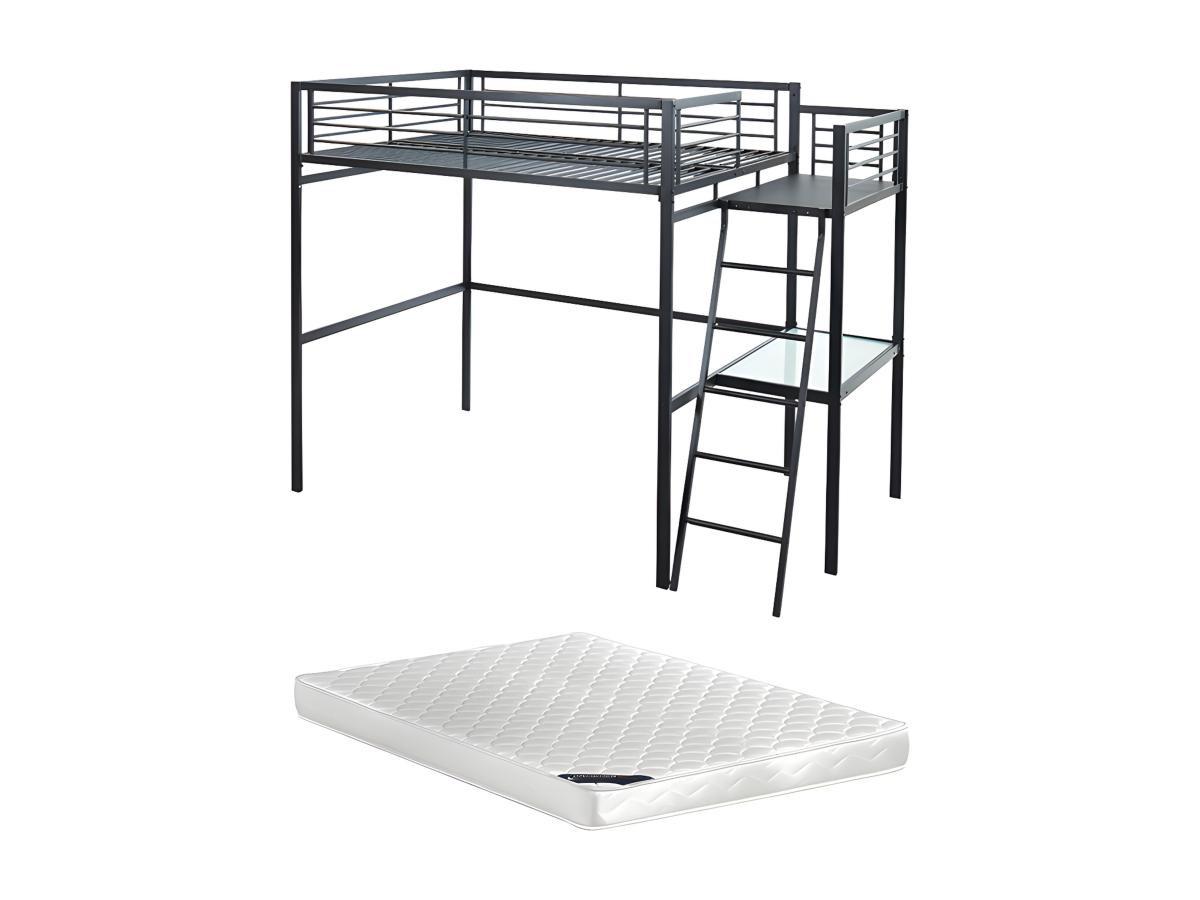 Vente-unique Lit mezzanine CASUAL II plateforme bureau + matelas