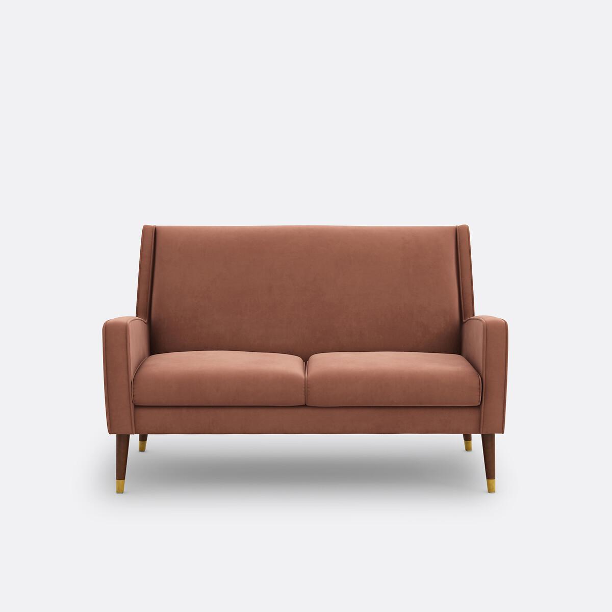 Le canapé (Y) 2 places : des lignes simples, des pointes de pieds finition laiton, un revêtement souligné par un piping chic et délicat...